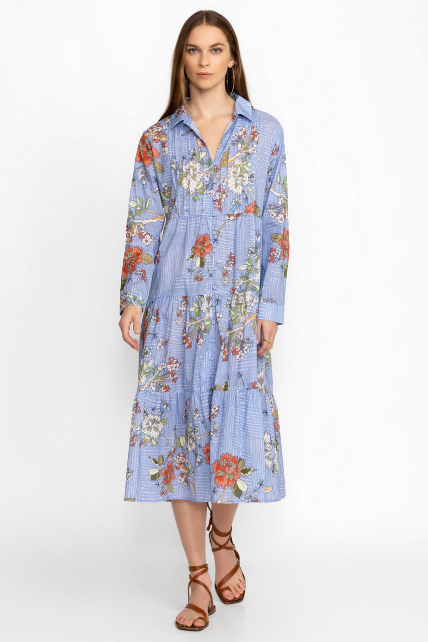Fun and flirty, the Mosaic Tiered Wanderer Dress offers a fresh floral print in an easy silhouette. Crafted from 100% breathable cotton, this dress features a button front, 3/4 sleeves and deep side pockets. Pair with white sneakers and a crossbody bag for a vacation-ready look with lots of style.