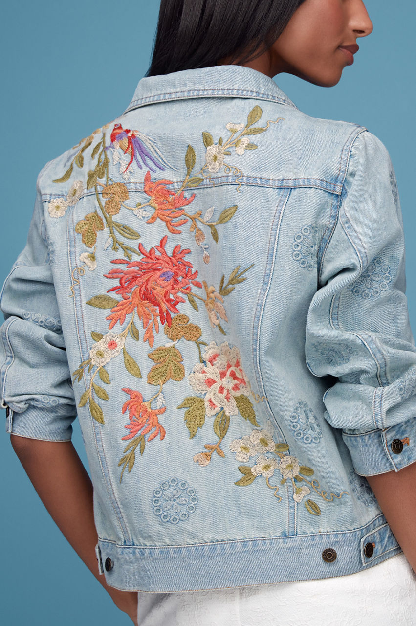 Crafted from pure cotton, the Nalina Denim Jacket redefines an iconic outerwear favorite with beautiful blooms. This denim jacket boasts a collar, long sleeves, a front button fastening, and a colorful placement embroidery comprising floral motifs. Wear with everything from dresses to jeans for a chic double denim look.