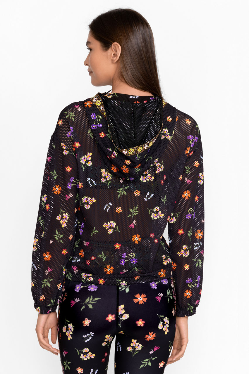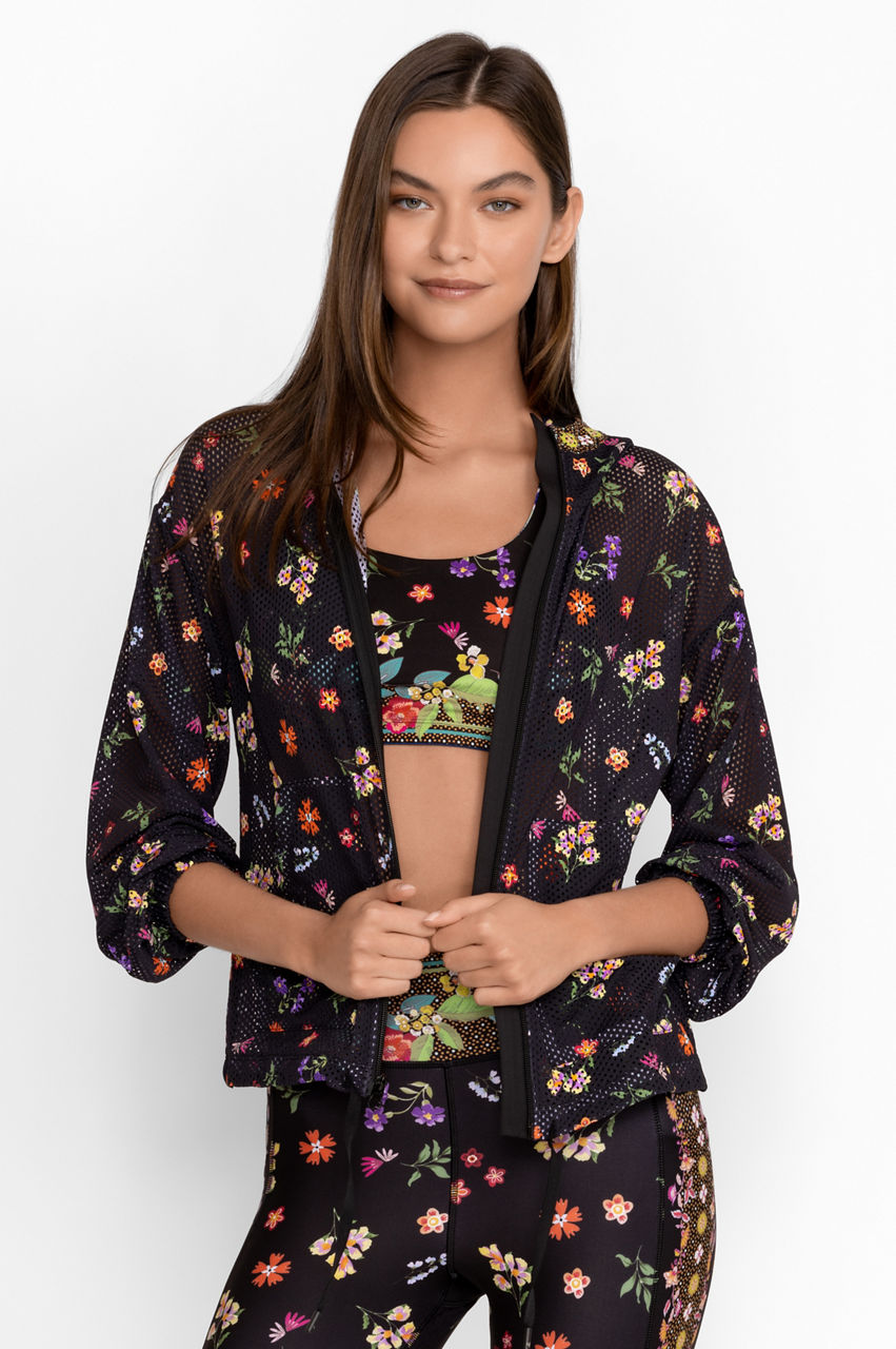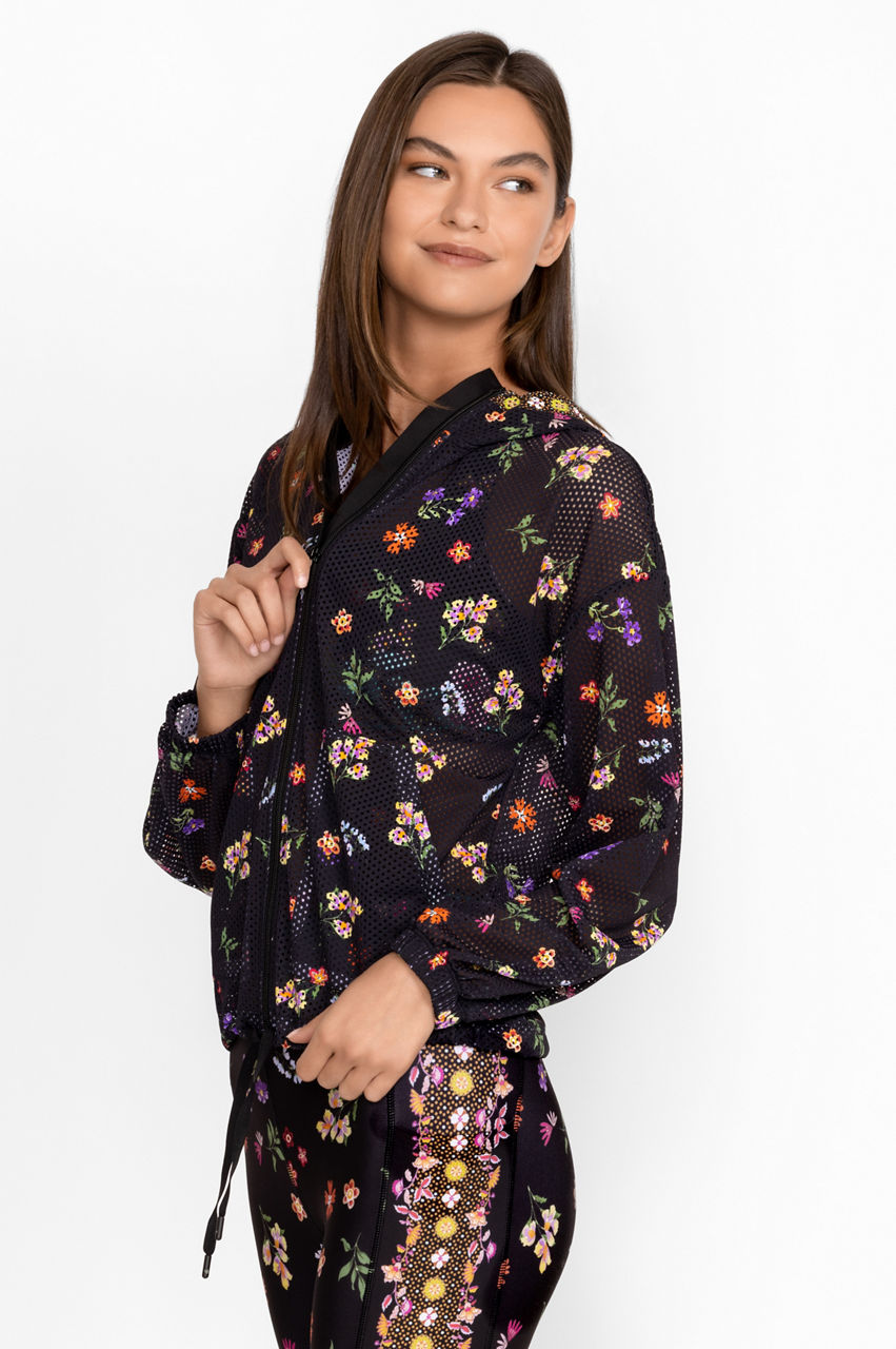 A stylish choice for outdoor activities, the Nani Patch Pocket Mesh Jacket marries functional sports details with an elegant feel. This jacket is made from a breathable mesh fabric with added stretch and features a hood, long sleeves, a front zip, and a drawcord at the hem to define the silhouette. Finished with a fresh floral arrangement, this jacket can be paired with leggings or shorts on warmer days.