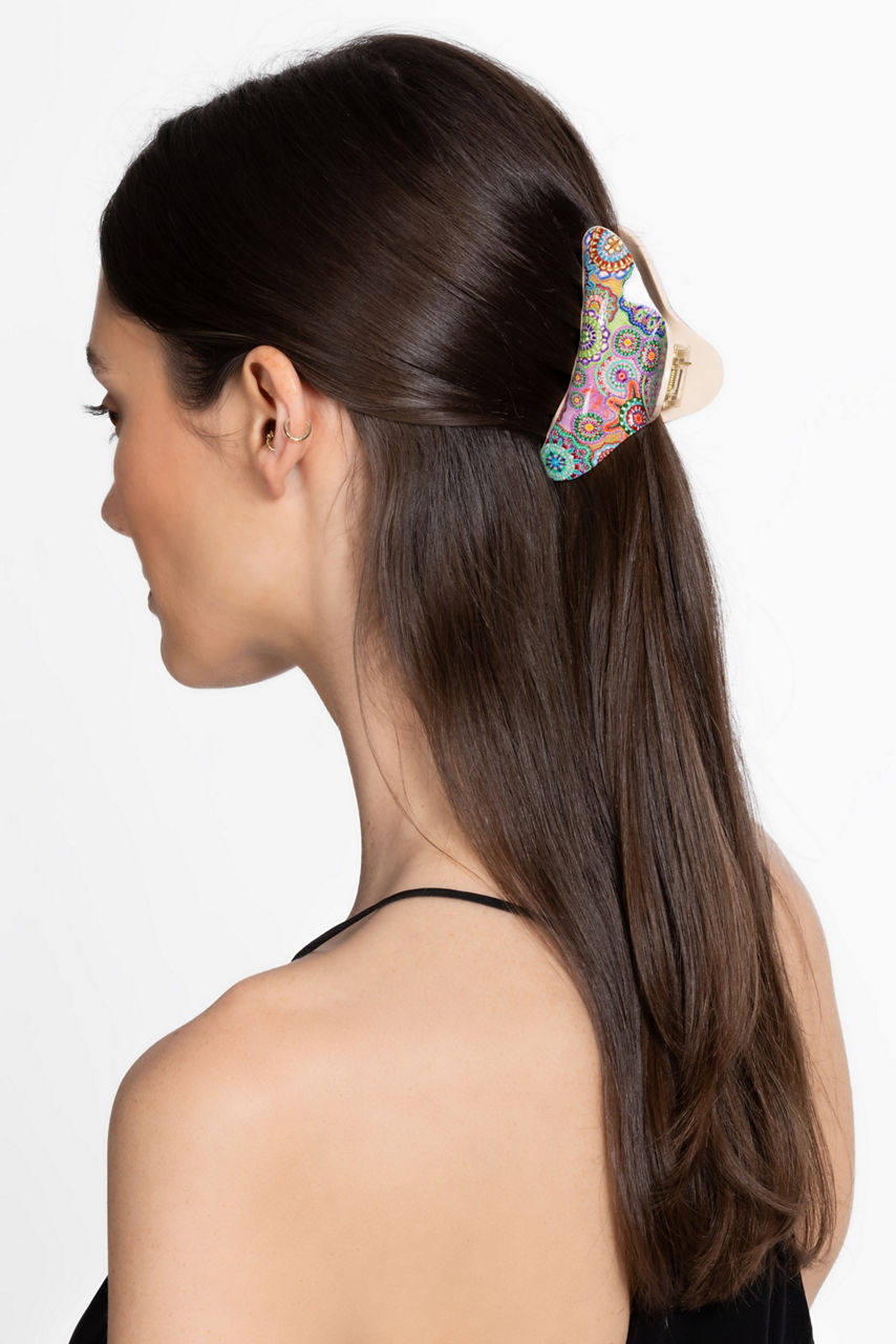 Featuring bold floral color with a retro-inspired print, the Napperon Hairclip elevates your casual style. Crafted from a durable acetate material with a glossy finish, this playful clip is equal parts functional and fun. This clip perfectly pulls up the sides of your hair or adds the finishing touch to a loose chignon twist.