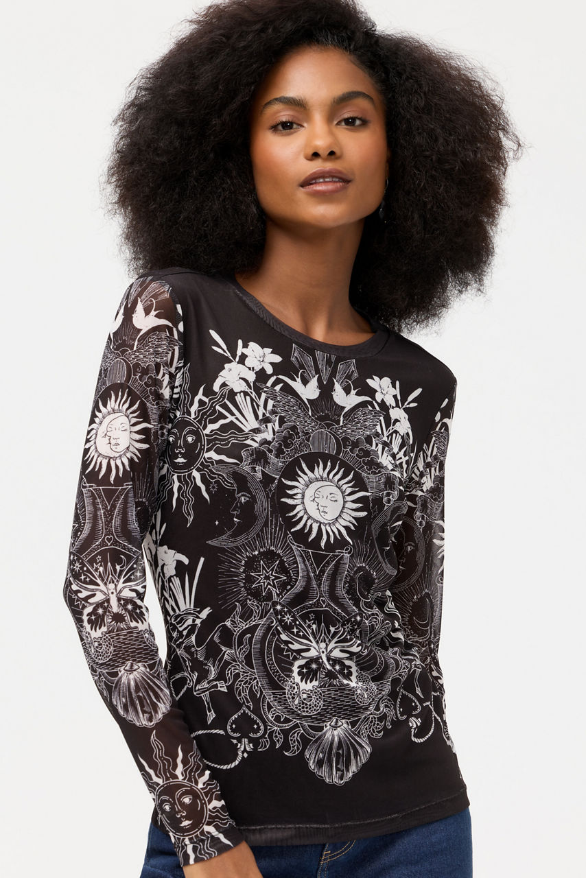 Beautifully adorned with bold florals blooms, the Natalie Long Sleeve Mesh Tee is visually stunning. Crafted from a lightweight, breathable mesh, this lined tee features a crew neckline and long sleeves in a fitted silhouette that is perfect for layering. Pair with a blazer and crisp trousers for a fresh work ensemble.