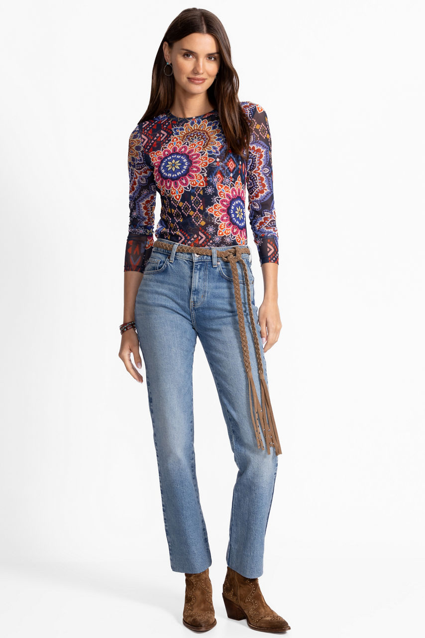 Beautifully adorned with bold florals blooms, the Natalie Long Sleeve Mesh Tee is visually stunning. Crafted from a lightweight, breathable mesh, this lined tee features a crew neckline and long sleeves in a fitted silhouette that is perfect for layering. Pair with a blazer and crisp trousers for a fresh work ensemble.