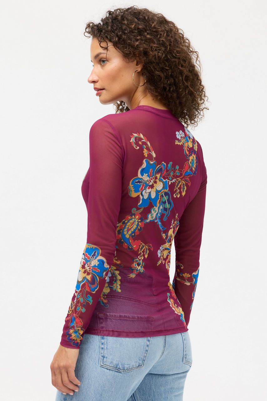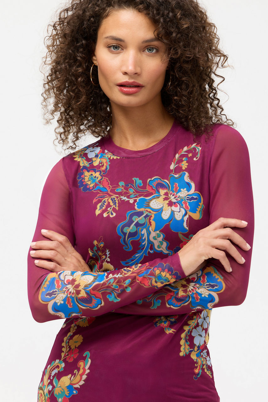 Beautifully adorned with bold florals blooms, the Natalie Long Sleeve Mesh Tee is visually stunning. Crafted from a lightweight, breathable mesh, this lined tee features a crew neckline and long sleeves in a fitted silhouette that is perfect for layering. Pair with a blazer and crisp trousers for a fresh work ensemble.