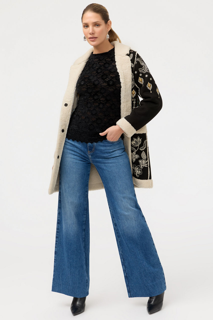 Crafted from intricately detailed stretch lace, the Natalie Long Sleeve Stretch Lace Tee is an elevated take on a classic wardrobe staple. Featuring a crew neckline and long sleeves, this elegant shirting option offers a mesh lining for additional coverage. Pair with trousers and a blazer for a modern evening look.