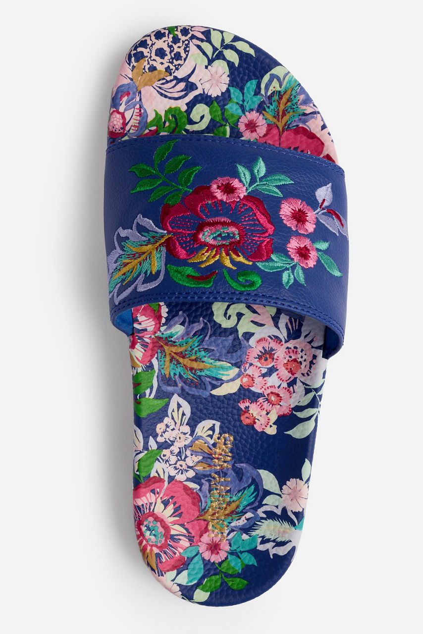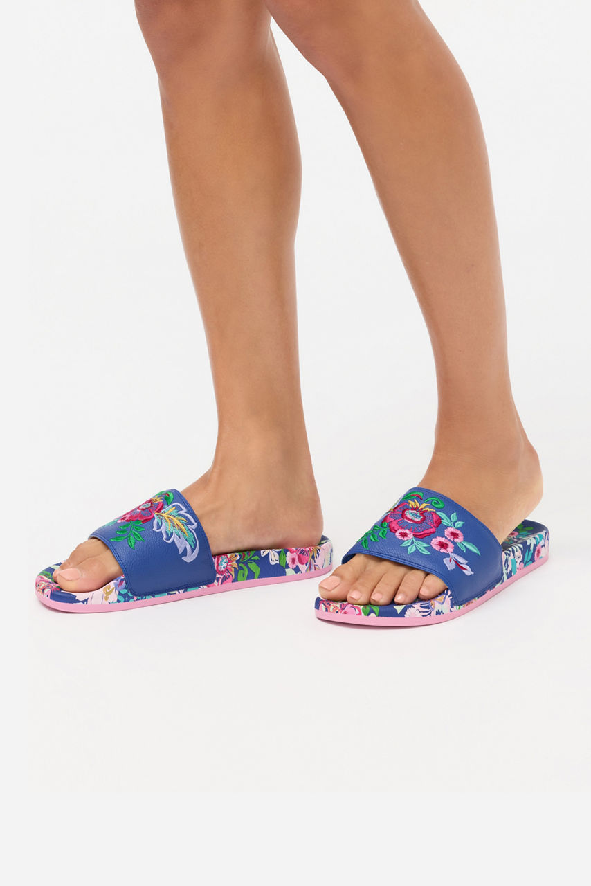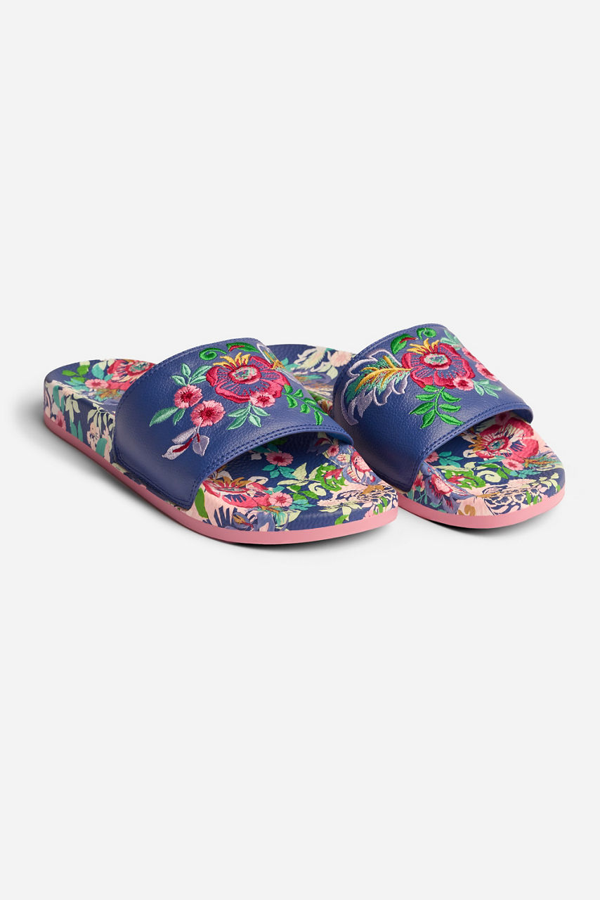 NAVY MELIA EMBROIDERED POOL SLIDE