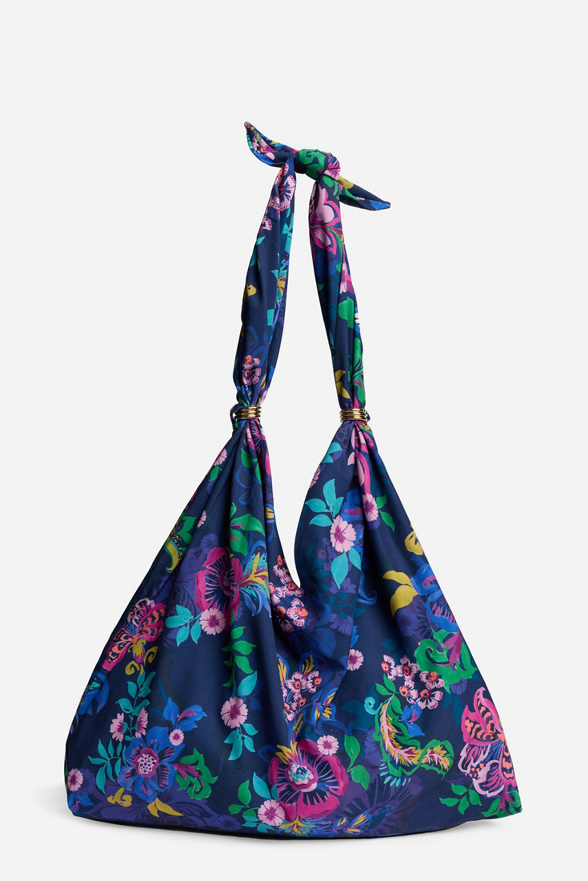 The Ring Beach Bag showcases a vibrant botanical print in rich, ocean-inspired hues. Designed with a knotted strap, metallic ring accents, a magnetic snap closure, and a convenient interior zipper pocket, it blends style and function for effortless days in the sun. Pair it with your favorite swimwear and coverup for a chic, beach-to-boardwalk look.