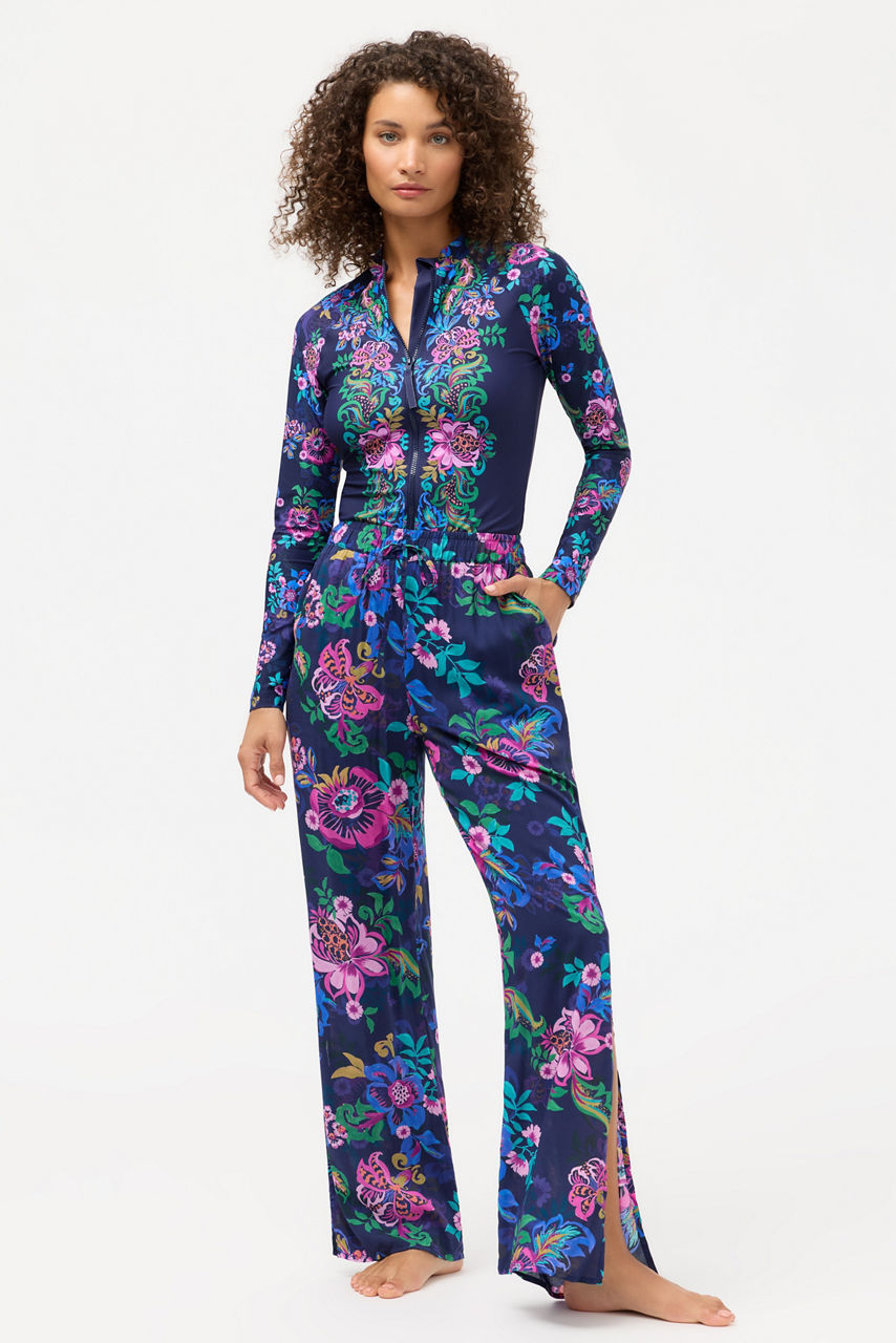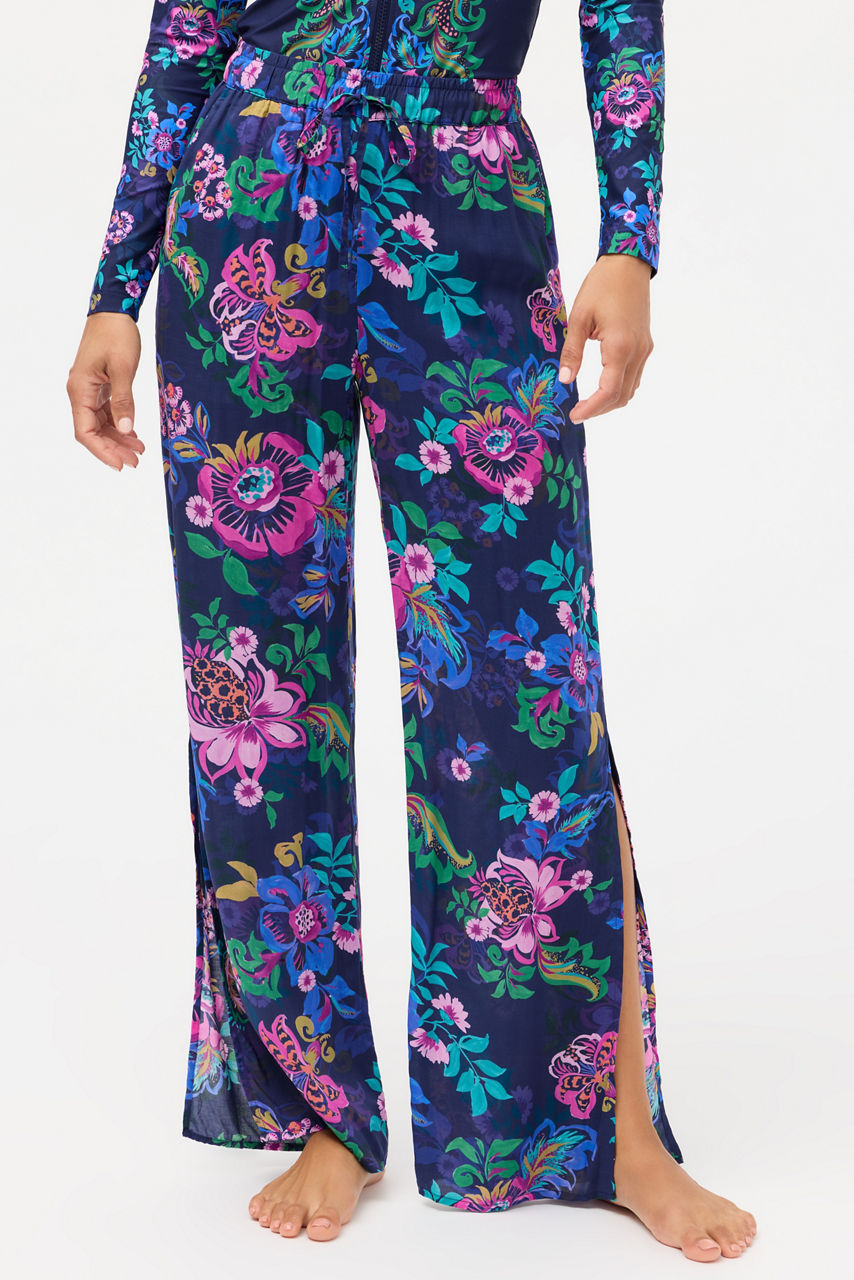 The Split Pant brings effortless movement and vibrant energy with its flowy silhouette and bold floral print. Designed with side slits, a comfortable elastic waistband, and a functional drawcord, it delivers an easy, breezy fit perfect for beach days or relaxed resort evenings. Lightweight and versatile, it pairs beautifully with swimwear or casual tops for a polished yet laid-back look.