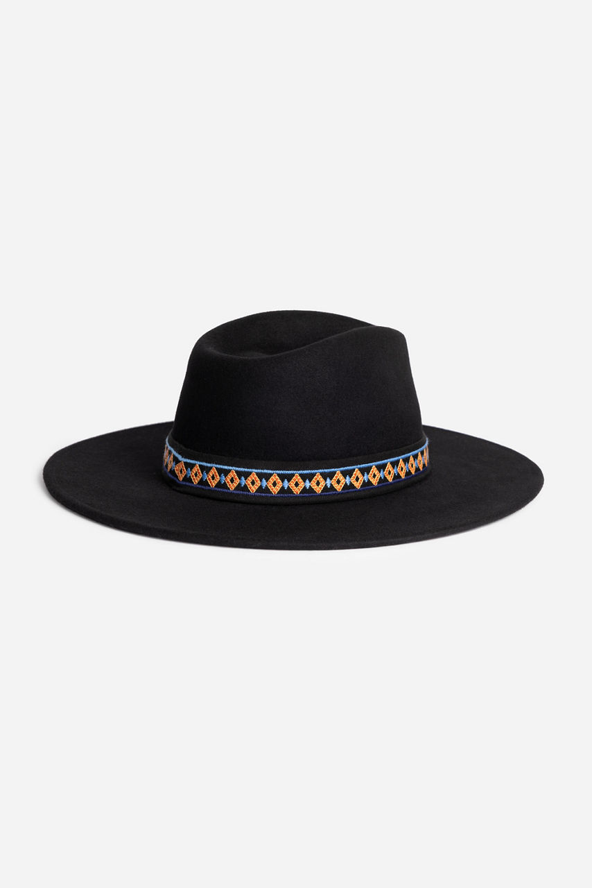 Crafted from 100% wool, the Nellie Hat is a wardrobe statement piece. Designed with a rough-hewn edge for a unique flair, this hat is accented with a bold hatband impeccably embellished with colorful embroidered accents. Wear with a denim-on-denim look paired with bold turquoise jewelry for a fun night out.
