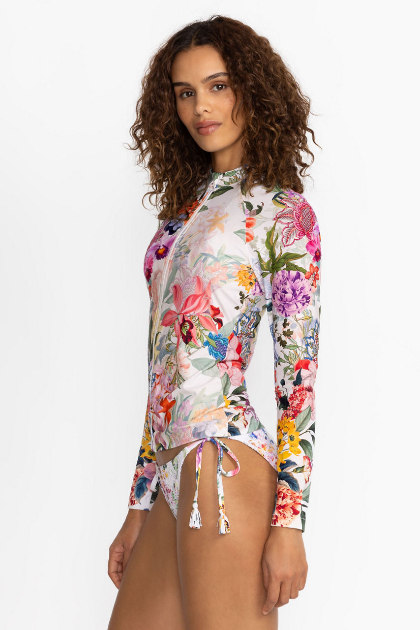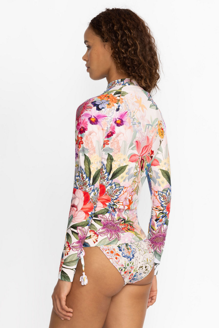 The perfect marriage of style and performance, the Neon Jungle Long Sleeve Surf Shirt is ready for surfside adventure. Crafted from a unique fabric that blocks 99.5 % of harmful UV rays, this fitted top features long sleeves and a crew neckline for added coverage. Layer over the Neon Jungle String Bikini for a day enjoying surf and sun.