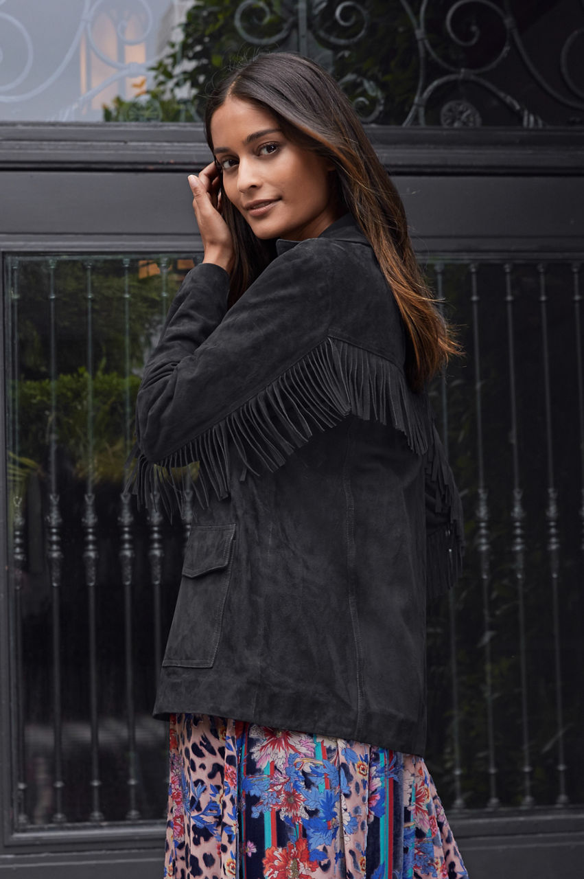 Nero Italian Suede Fringe Jacket