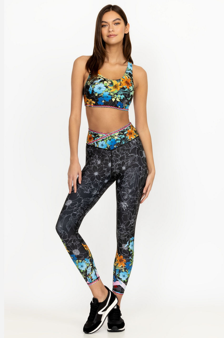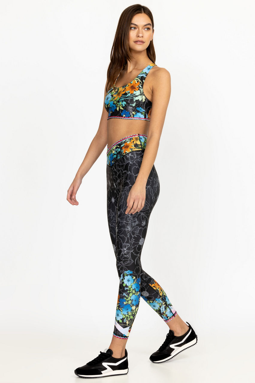 A contrast of color and print, the Nero Sequence Cross Waistband Active Leggings put an artistic spin on a functional activewear staple. These leggings are made from a breathable fabric with added stretch and feature a cross elastic waistband, a slim leg, a monochrome floral print, and opposing tropical blooms at the edges. Team with a sports bra for ultimate freedom of movement or style with a raglan top for a relaxed look.