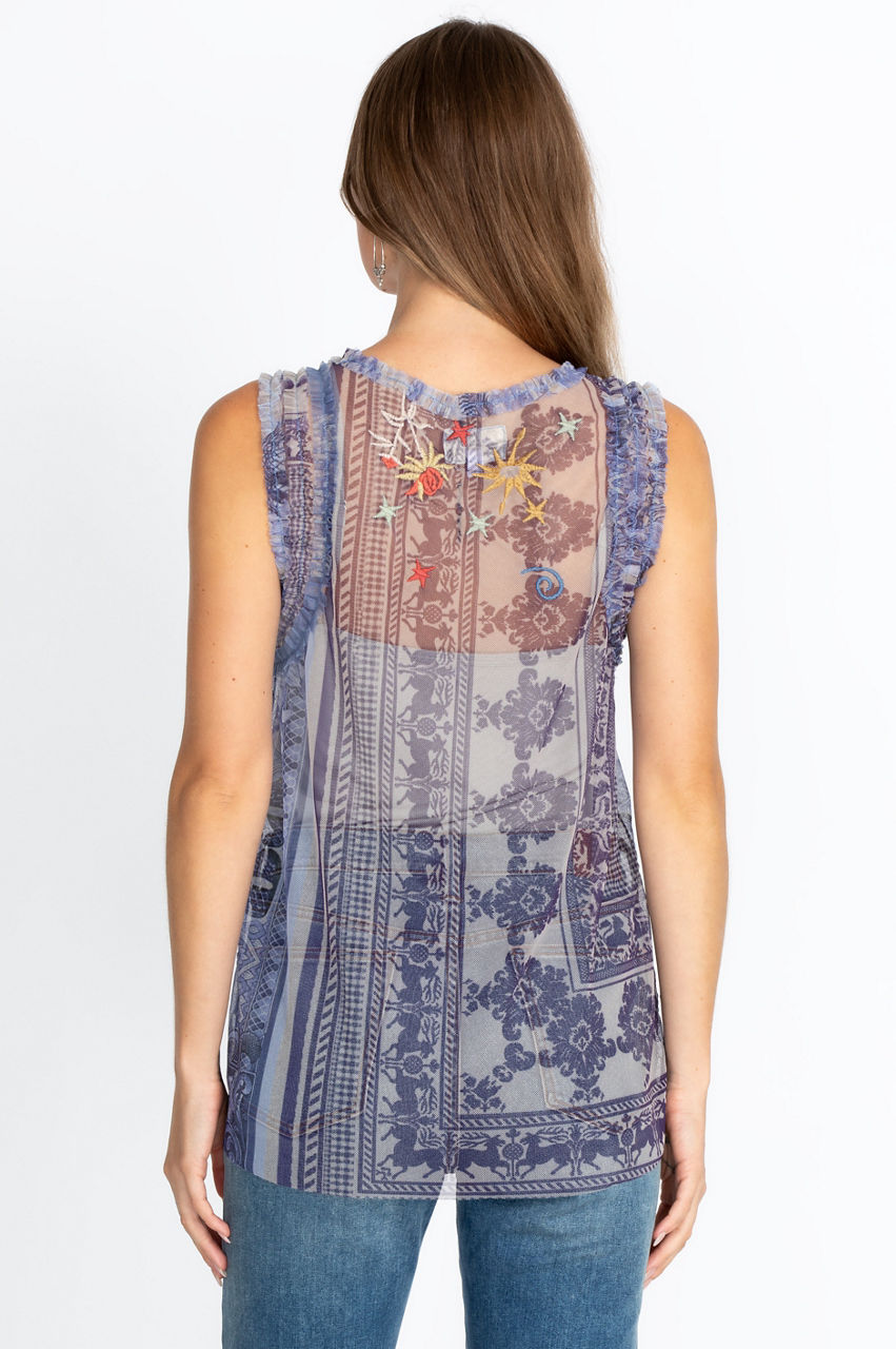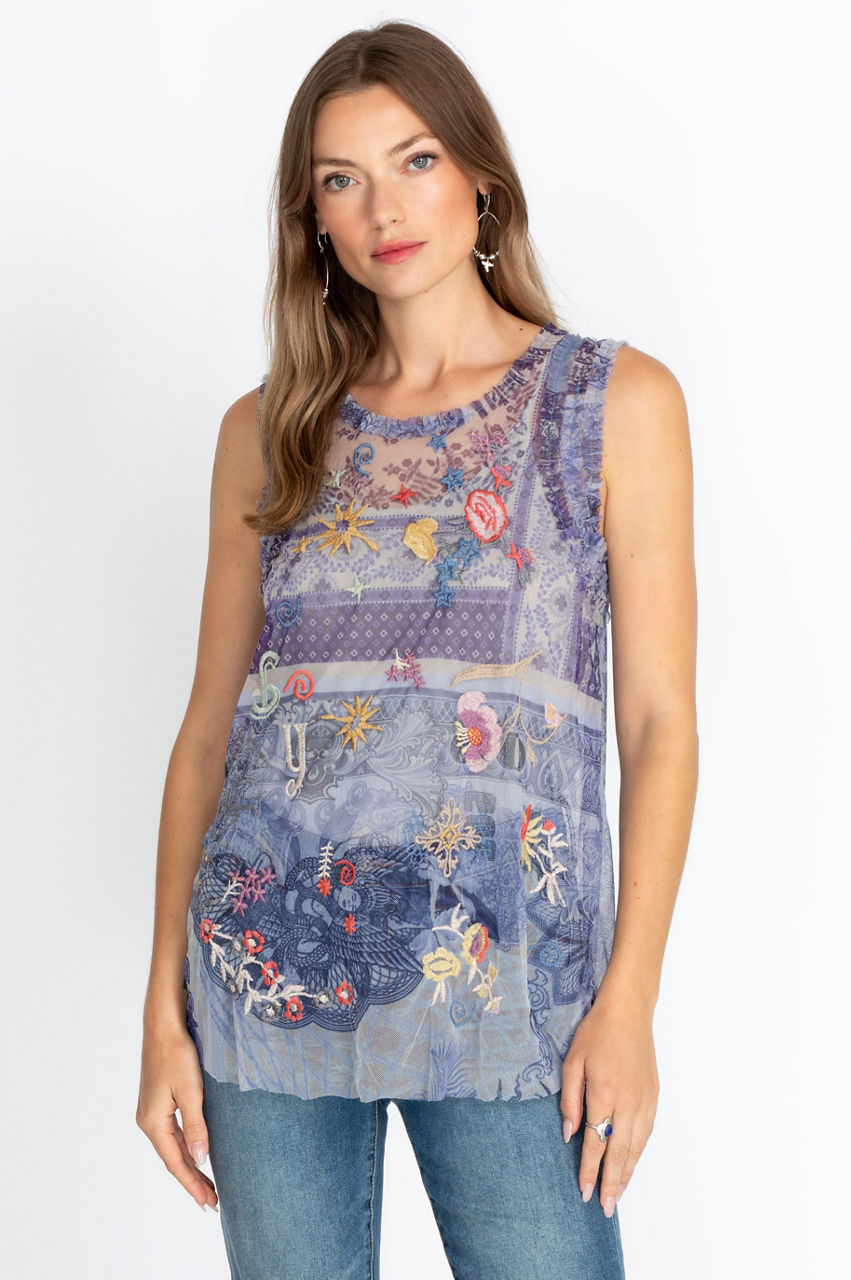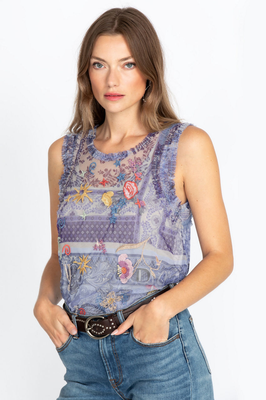 This gorgeous artisan-inspired top stands out thanks to its classic sleeveless cut. The geometric motifs and the delicate abstract print come together to create a stylish look with a few pops of color that will breathe life into your outfit. Accessorize with some gemstone jewelry or a colorful handbag to complement these eye-catching details, and add your favorite skinny jeans for a laidback look.