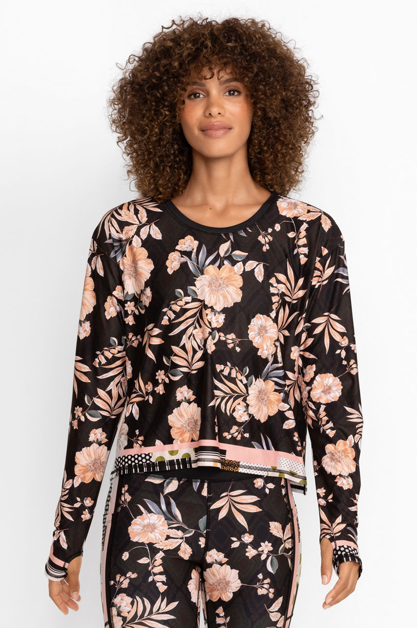 Serving up chic style and ultimate comfort, the Nido Step Hem Tee is an elevated take on modern sportswear. Crafted from a fade resistant, machine washable fabric, this floral tee features a rounded neckline and easy step hem for a feminine silhouette. Pair with a tennis skirt and sneakers for a fun fall excursion.