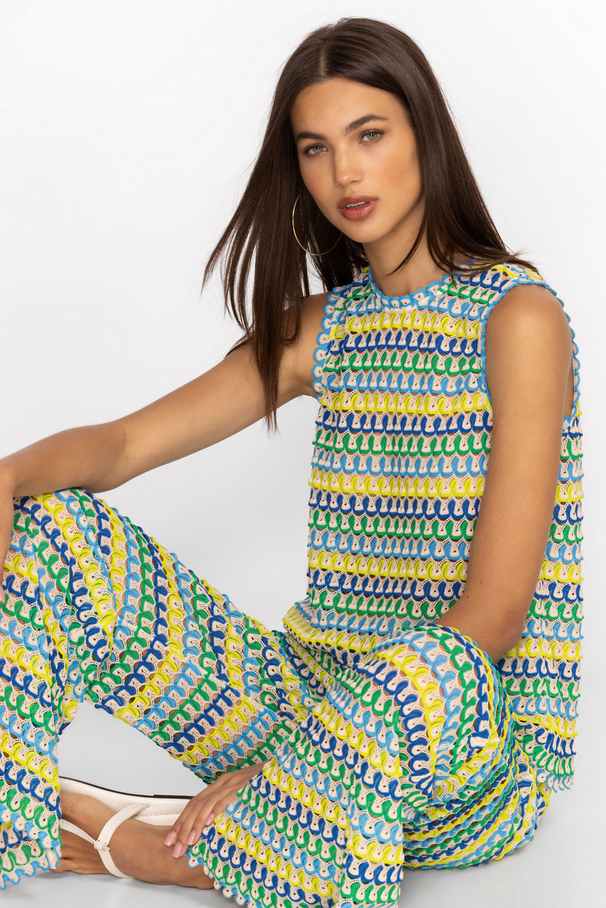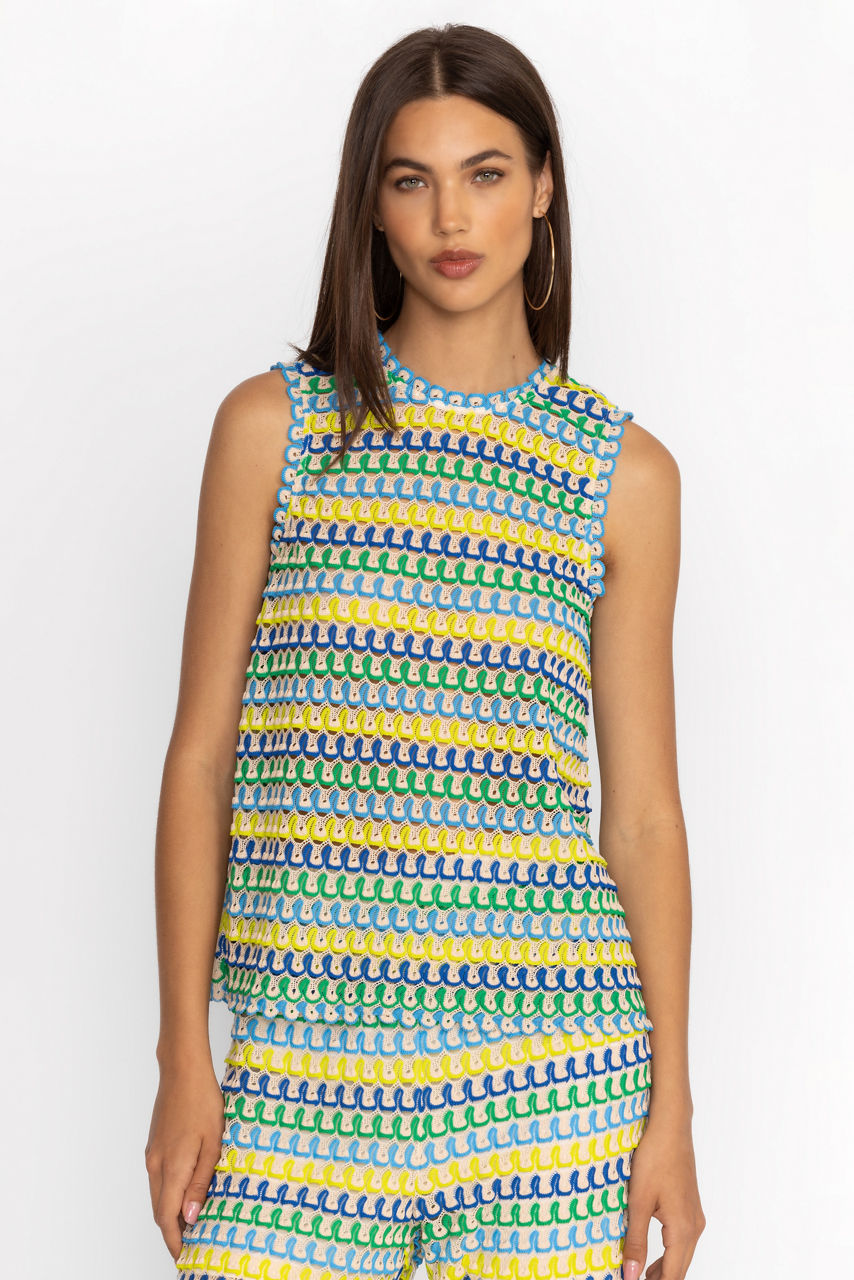 Crafted from a lightweight fabric, the Nili Tank Top offers an elevated twist to a classic casual favorite. Featuring a high rounded neckline, this unique sleeveless tank is finished with loop edges and a slip liner. Pair with the Kaylani Pants and wedge sandals for a perfectly coordinated warm-weather look.