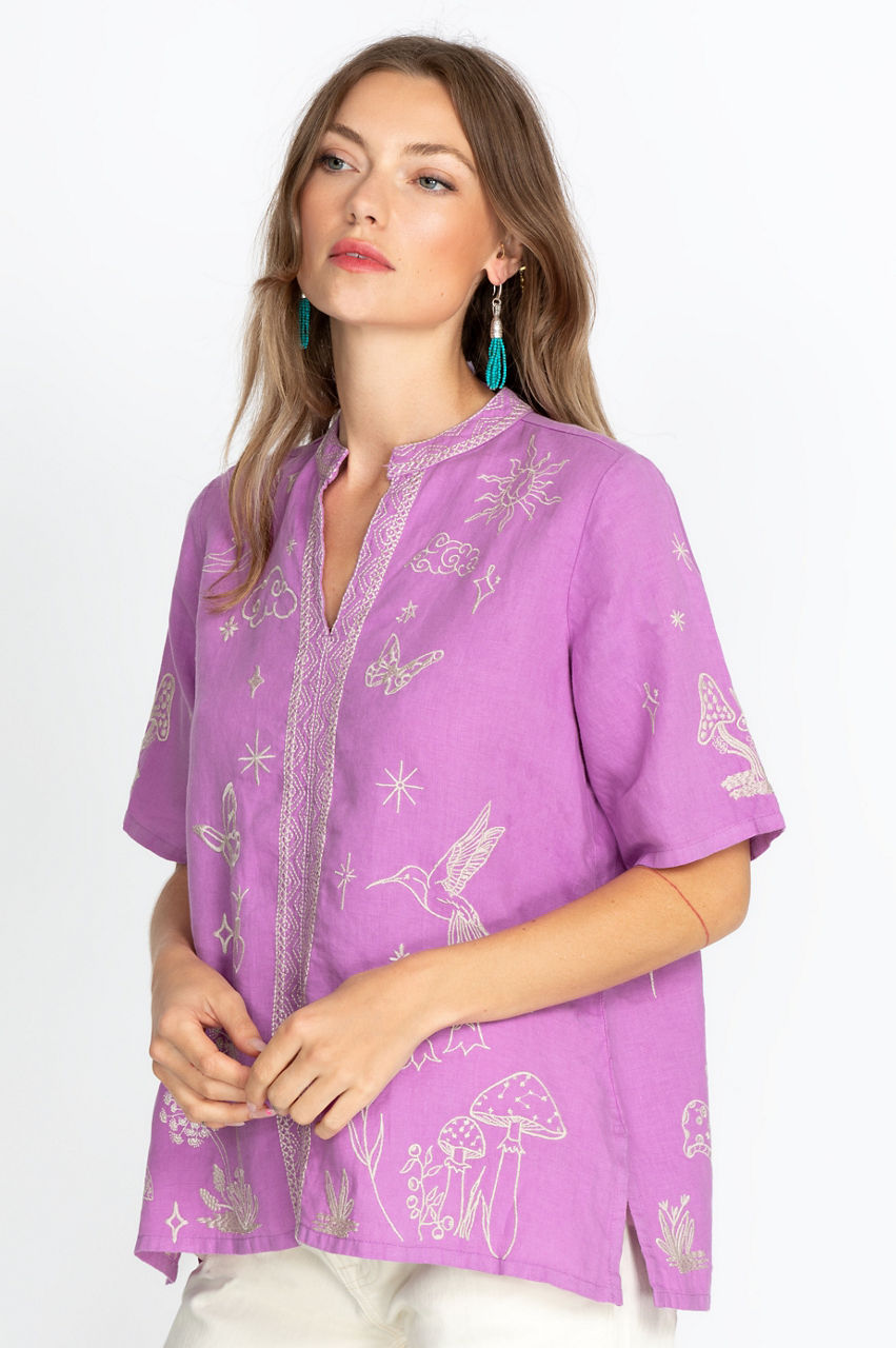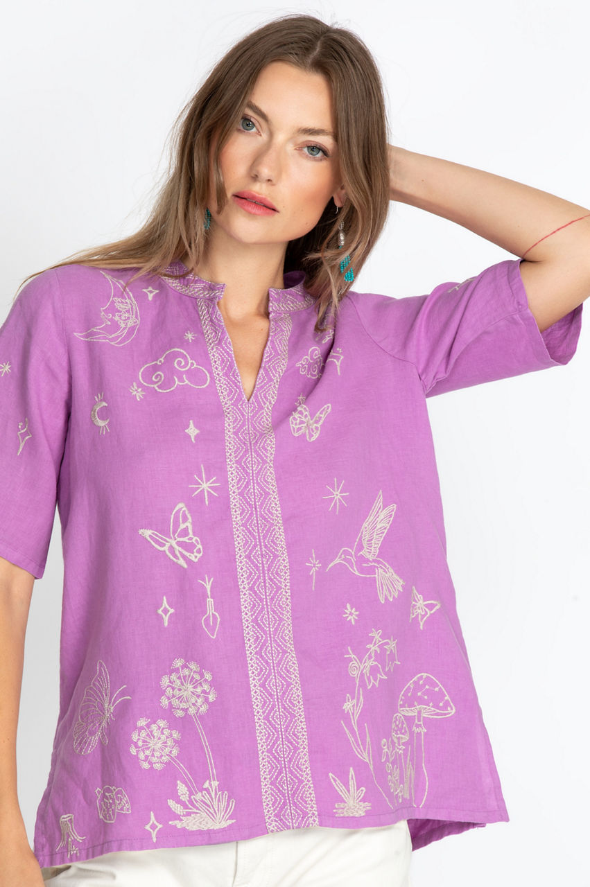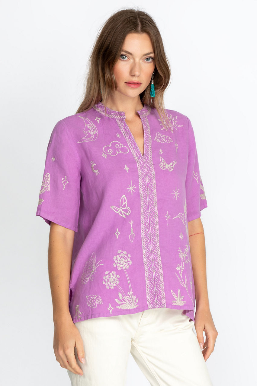 Our chic Noah Easy V-Neck Top combines delightful embroidery, an oh-so-comfortable fit, and a stunning colorway to give you a new wardrobe staple. This piece is perfect for browsing your favorite shops around town or going on an impromptu date night with your special someone. Pair this top with skinny jeans and wedges, and complete the outfit with your favorite embroidered clutch.
