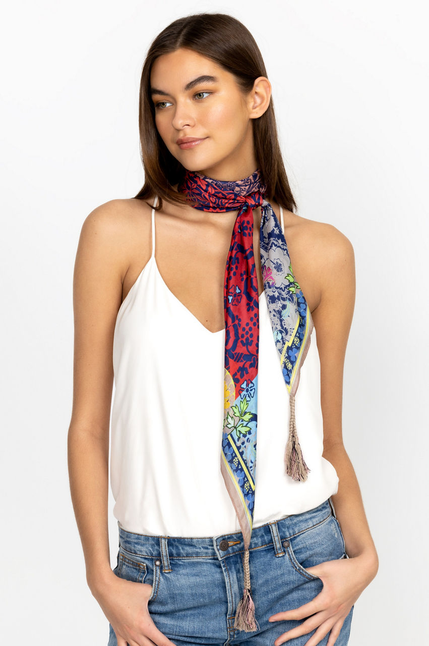 A kaleidoscope of color and print, the Olivia Scarf is a statement-making accessory for every wardrobe. This hypnotizing scarf is spun from pure silk and features a repeated square print complete with an array of striking patterns. Equal parts elegant and stylish, this scarf is the perfect finishing touch to brighten any outfit.