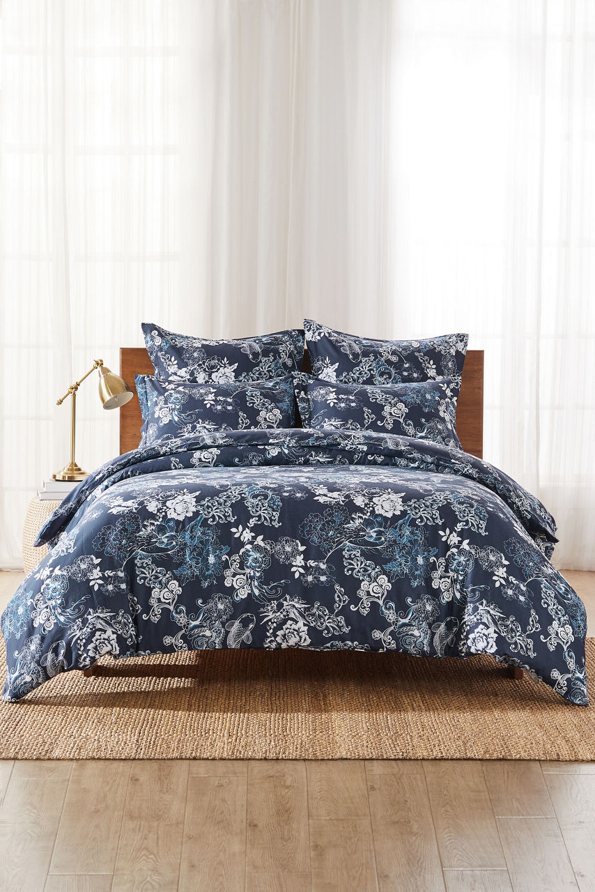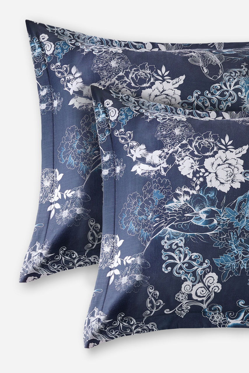 Beautifully adorned with delicate floral blooms, the Olivia Standard Pillow Shams create a serene bedroom space. Crafted from 100% breathable cotton, these pillow shams feature bouquets in hues of blue and grey for a calm, tranquil slumber. Pair with the Olivia Duvet for a completed bedroom ensemble.
