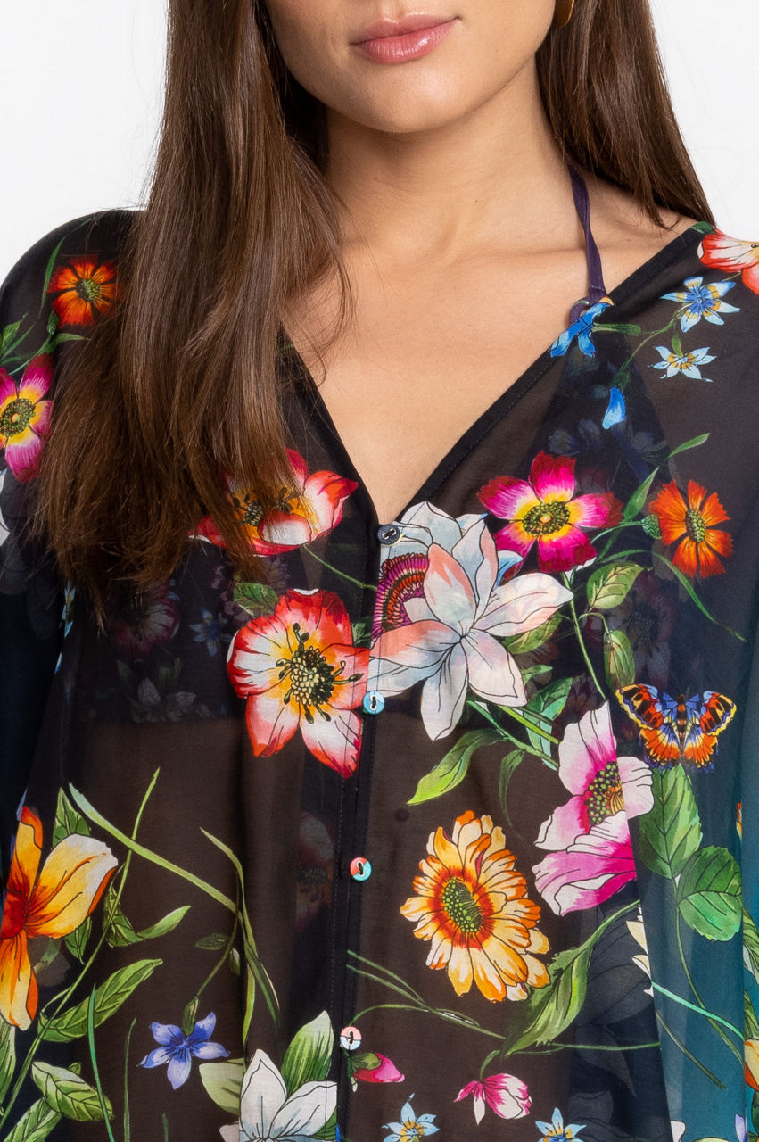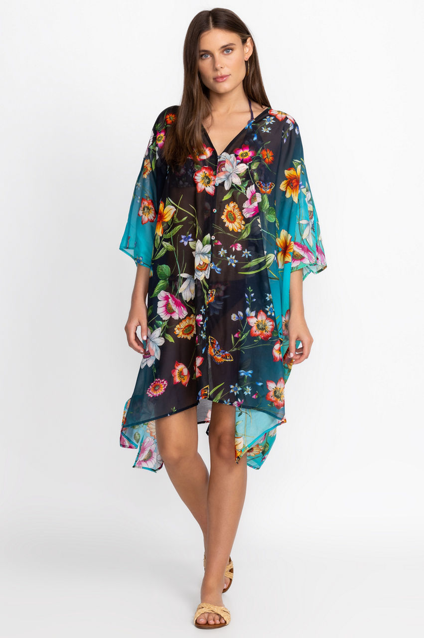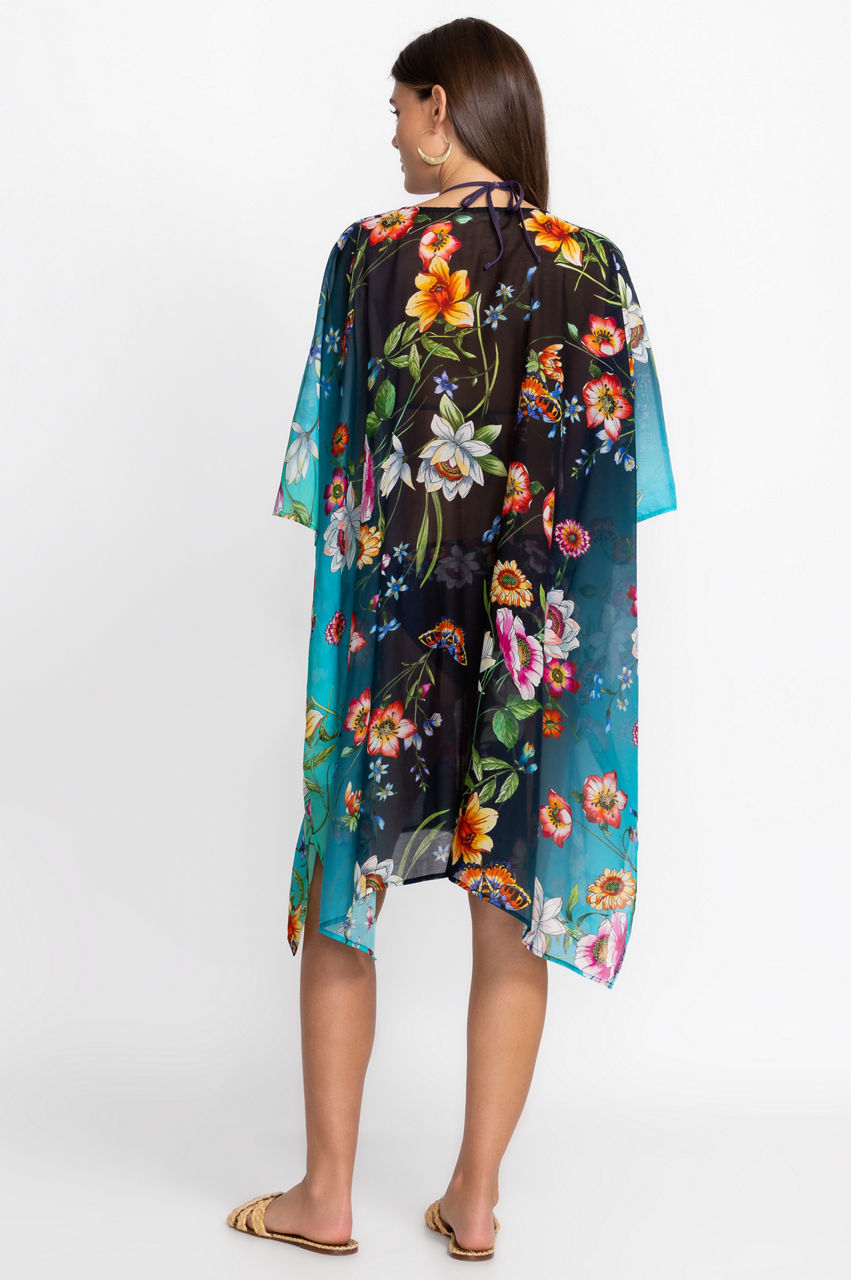 Equal parts captivating and classic, the Ombre Garden Short Kimono adopts a free-flowing cut that's perfect for warmer climes. This kimono is designed from a luxe cotton silk blend and boasts a flattering V-neck, long sleeves, and sprouting blooms throughout in a beautiful selection of colors. Style over swimwear and sign off the look with sandals or slides.