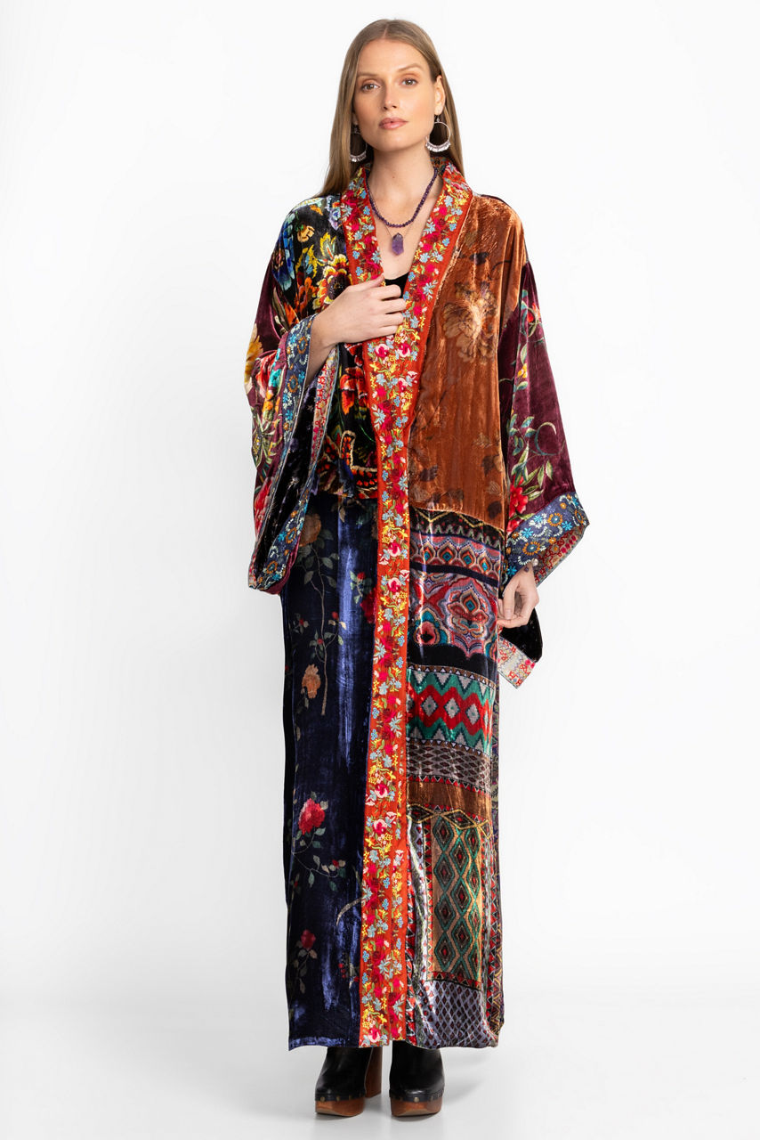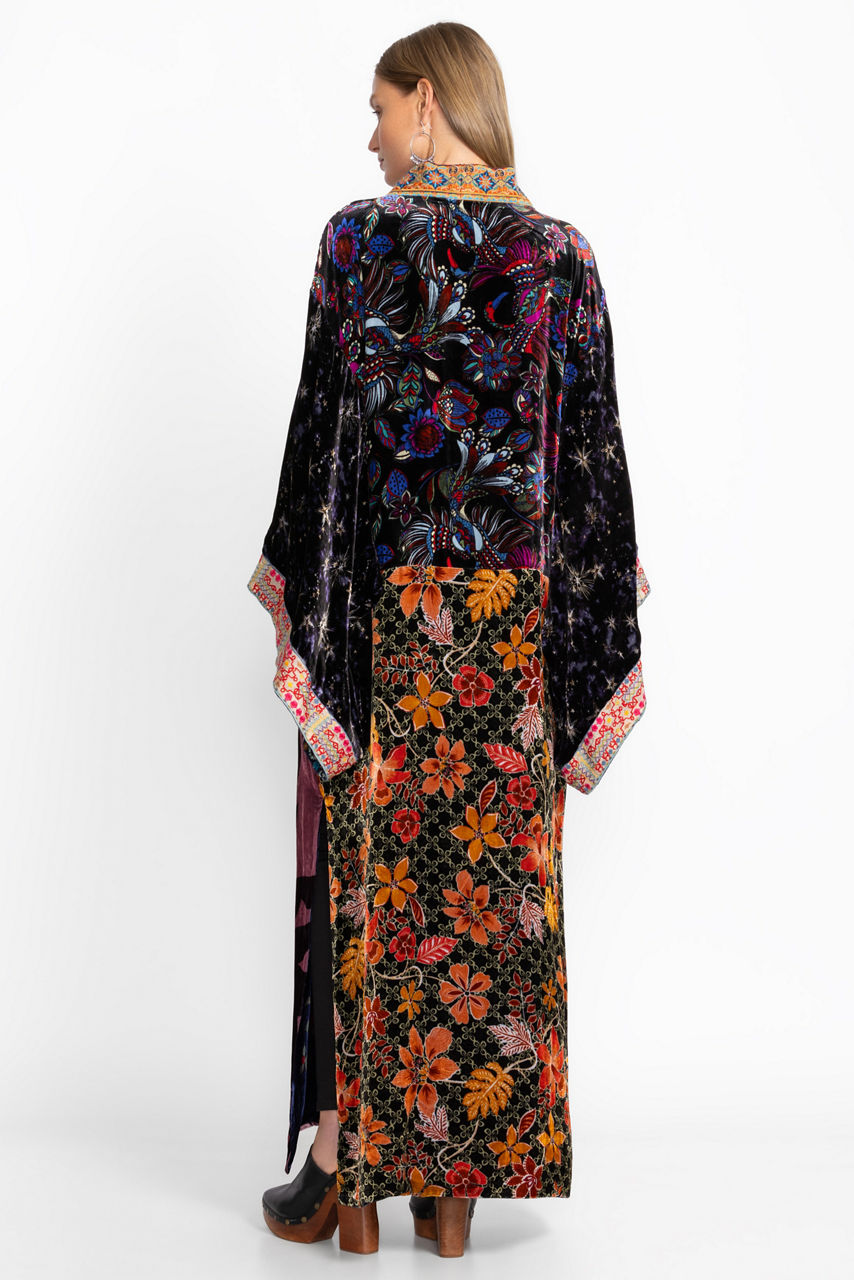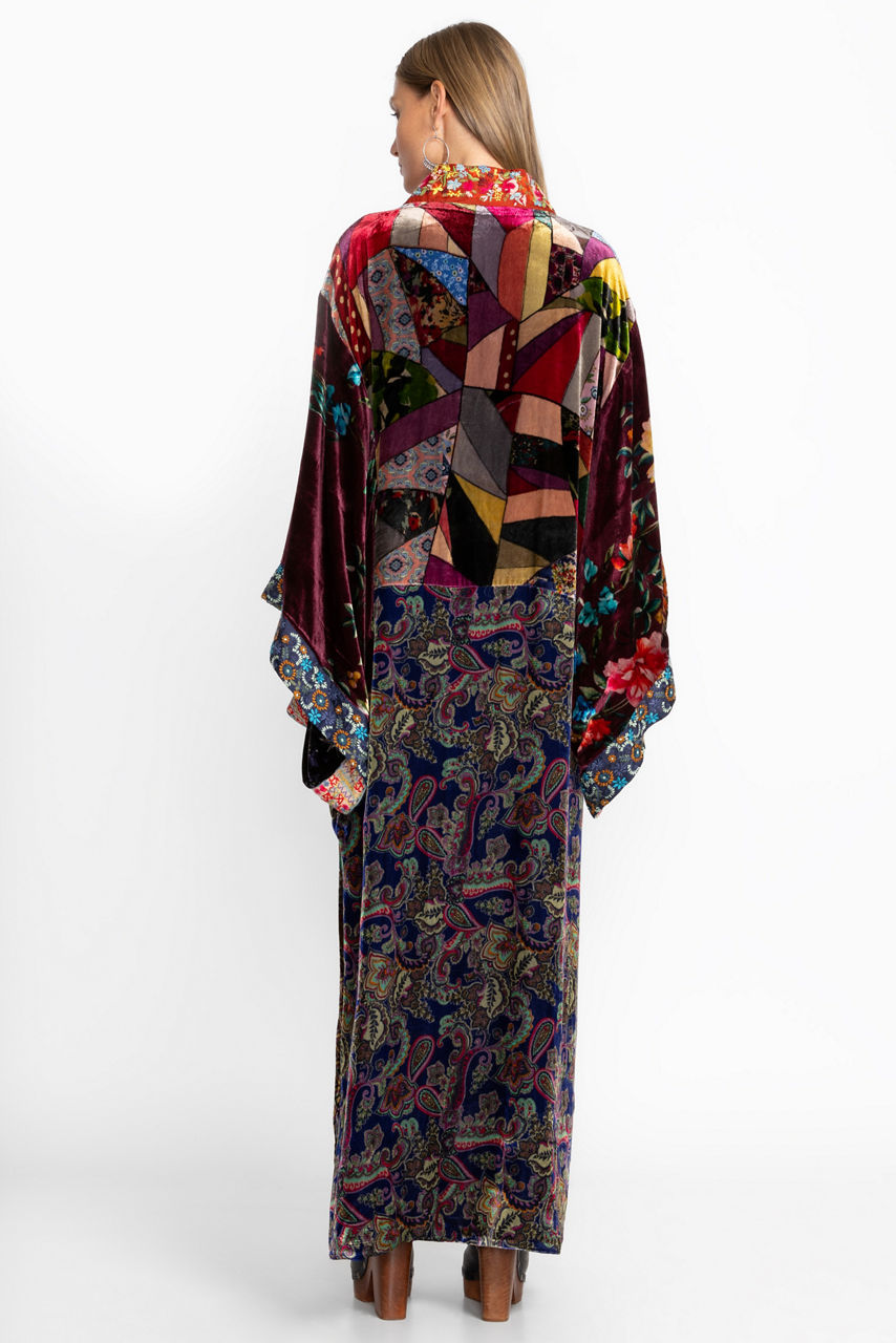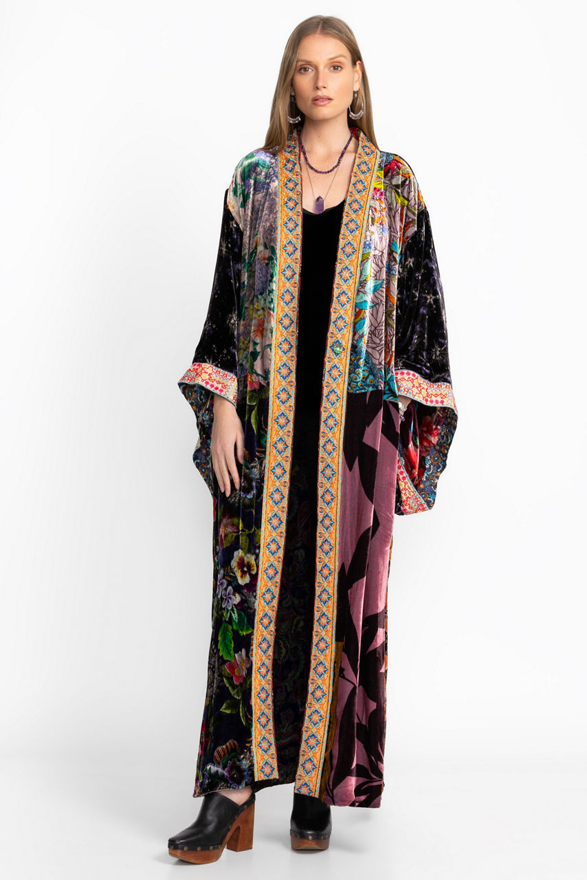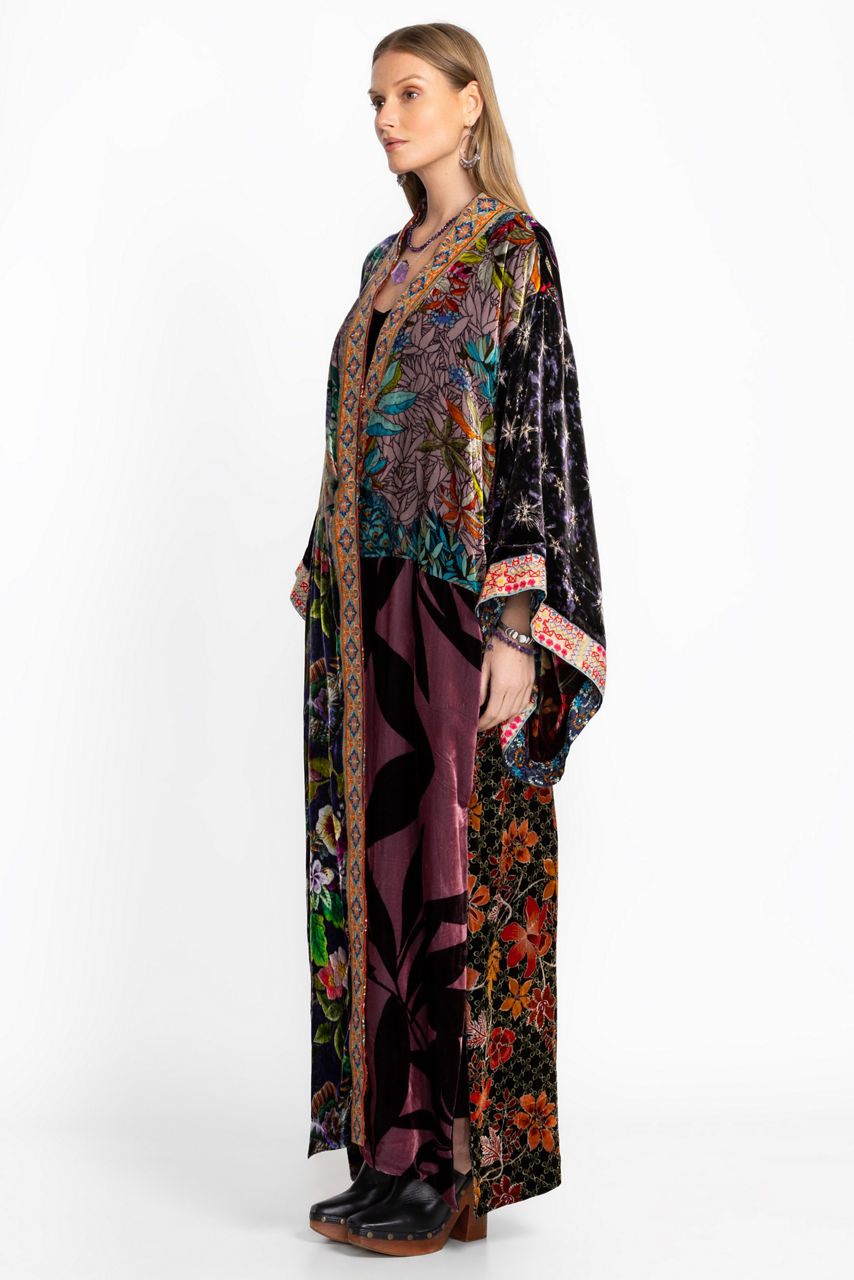 Individually crafted in Los Angeles, the One of a Kind Velvet Kimono is truly unique and no two are alike. Thoughtfully crafted from a plush silk-blend velvet, this full-length kimono is accented with wide sleeves and is finished with a snap-front closure and side vents. Wear over an outfit to add elegance or layer over silky sleepwear and pair with cozy slippers for a truly luxurious evening lounge wear ensemble.