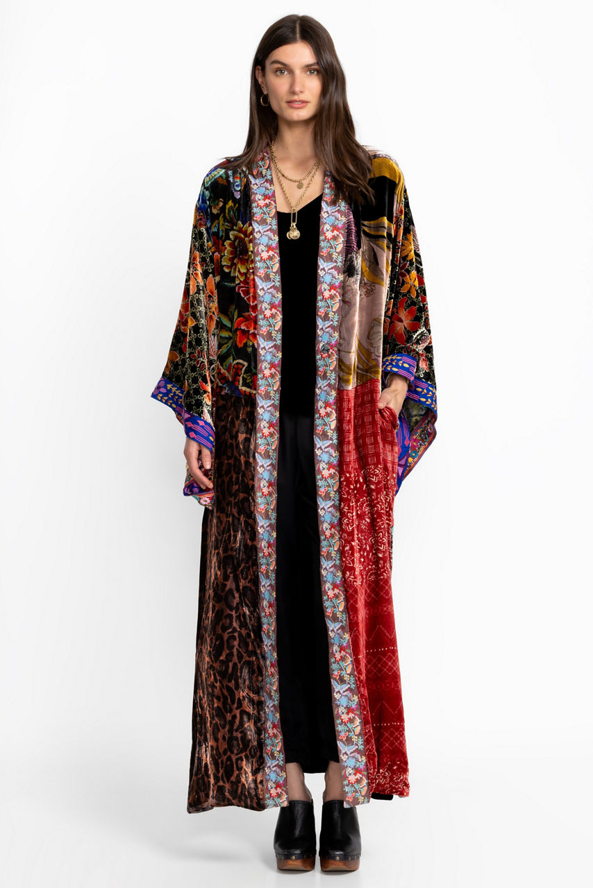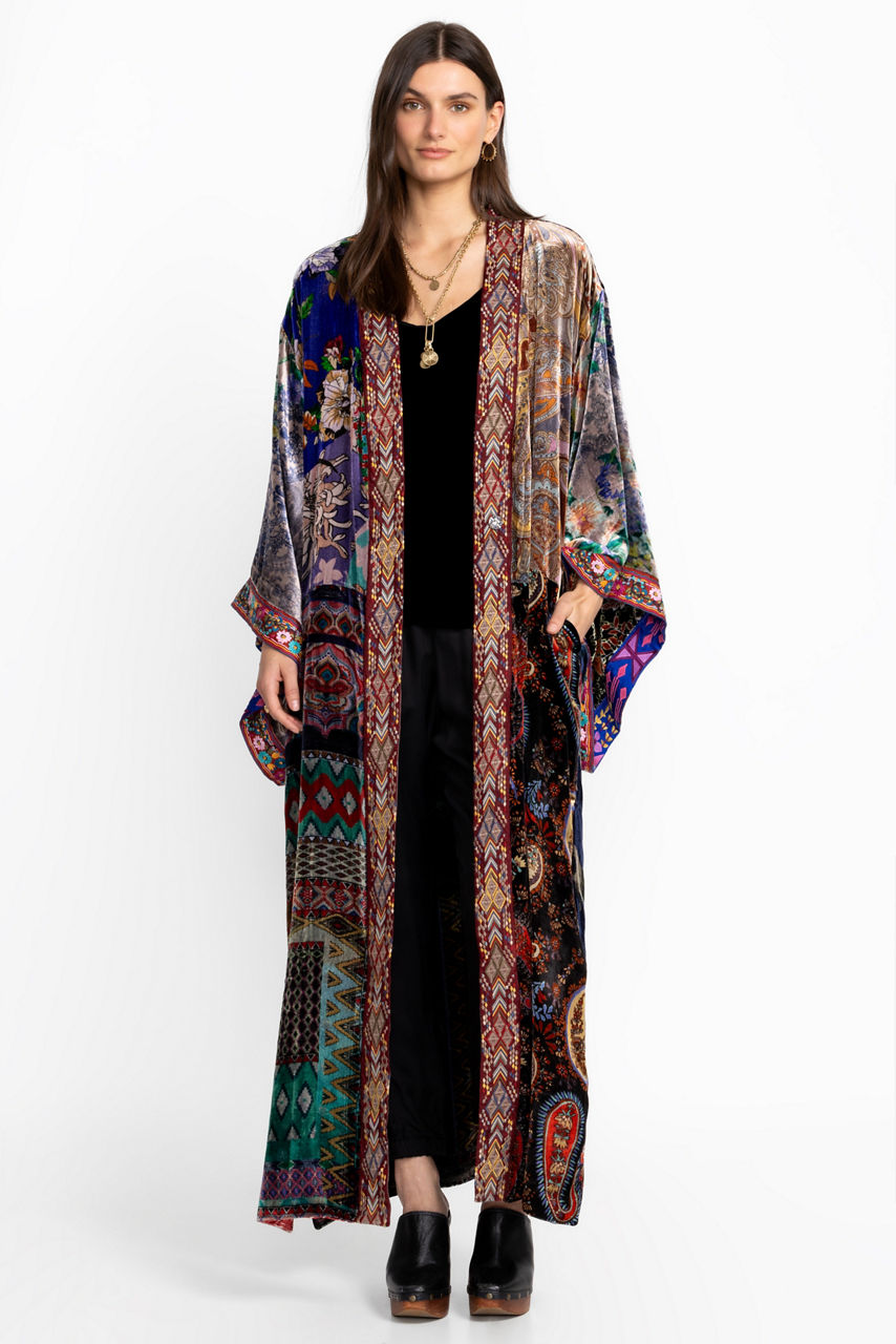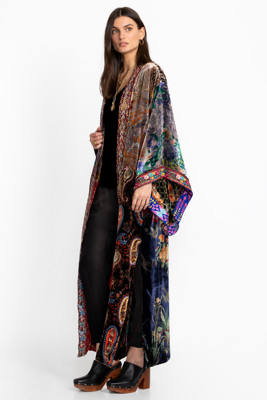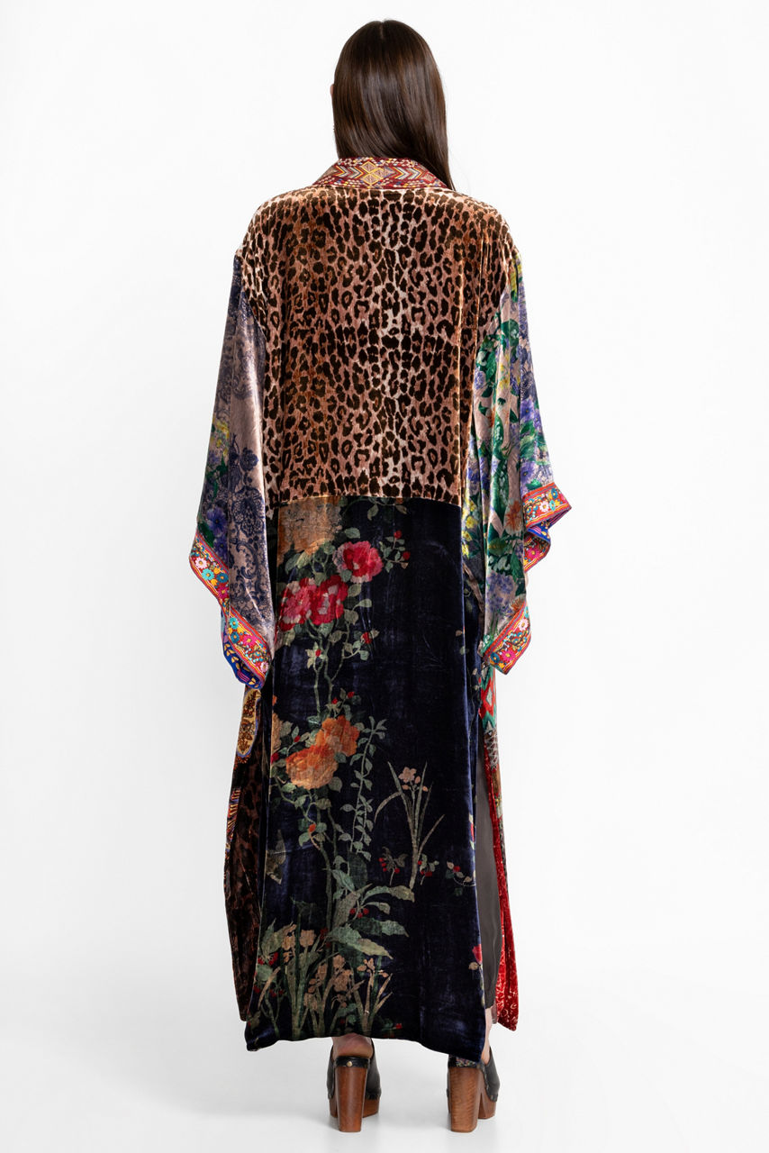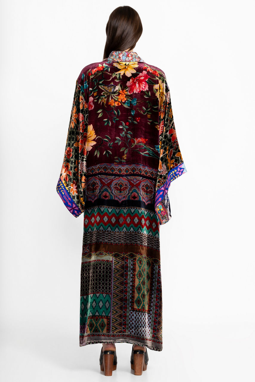 Individually crafted in Los Angeles, the One of a Kind Velvet Kimono is truly unique and no two are alike. Thoughtfully crafted from a plush silk-blend velvet, this full-length kimono is accented with wide sleeves and is finished with a snap-front closure and side vents. Wear over an outfit to add elegance or layer over silky sleepwear and pair with cozy slippers for a truly luxurious evening lounge wear ensemble.