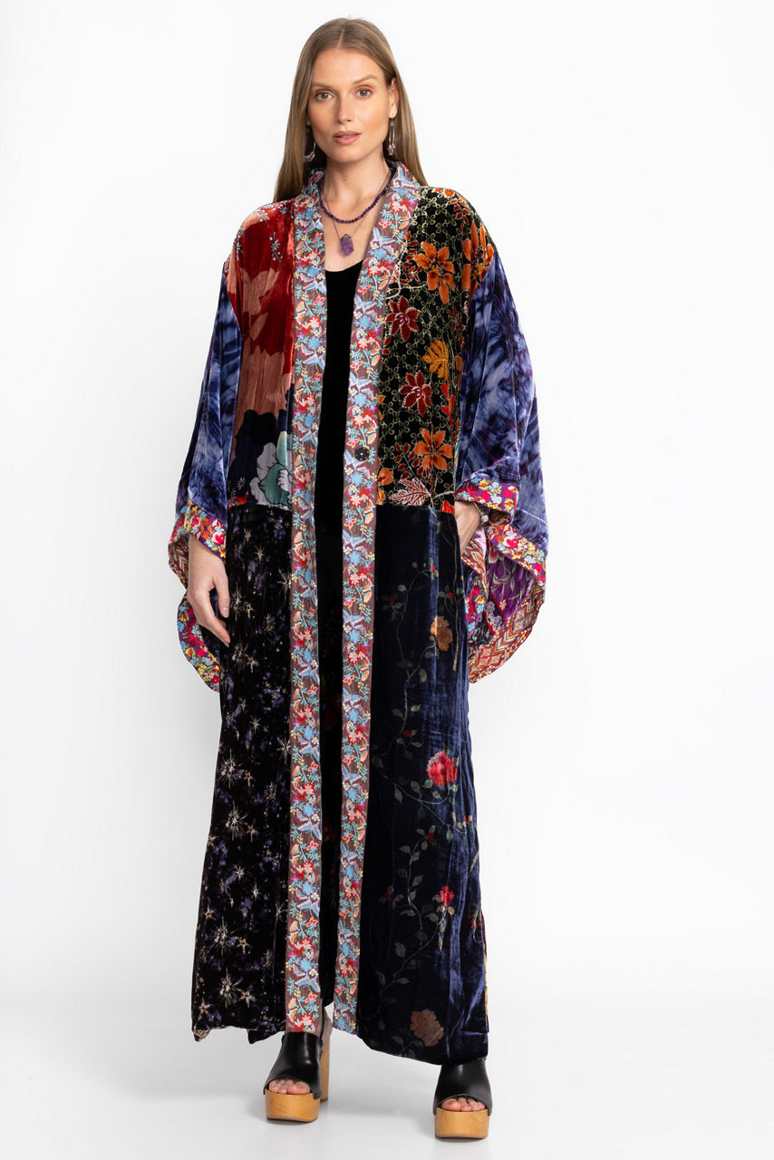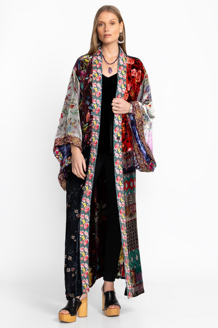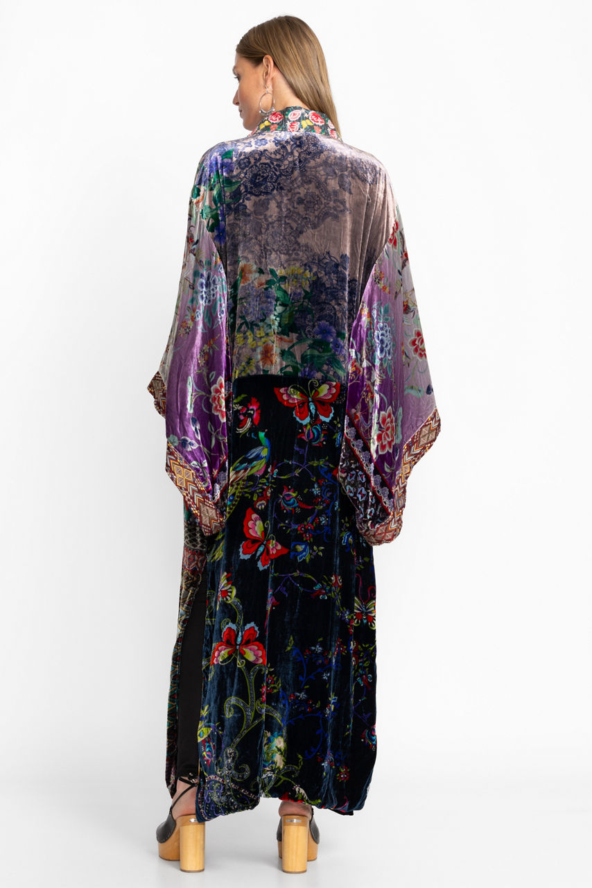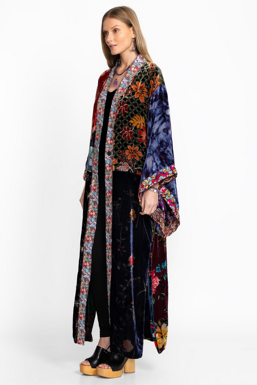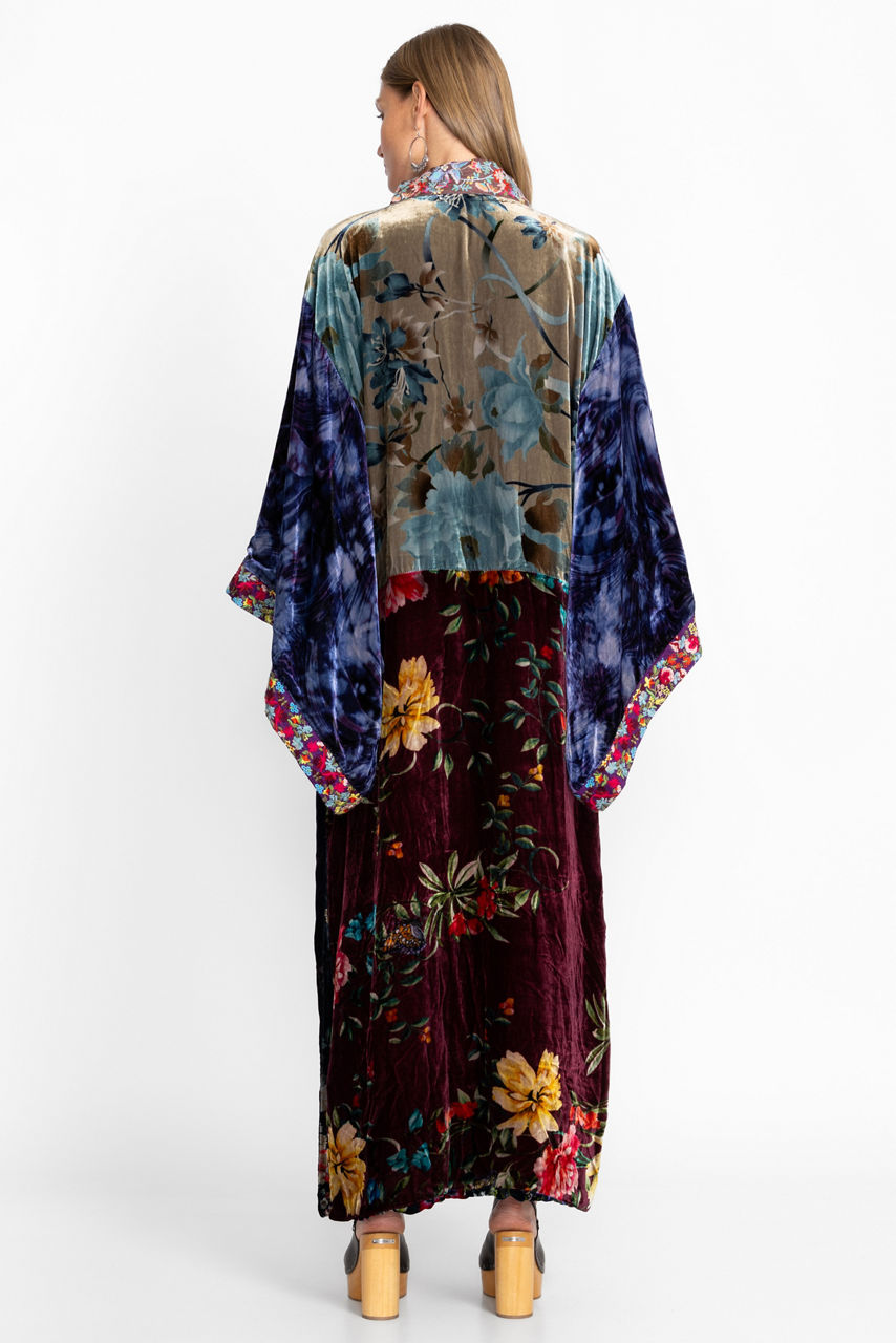Individually crafted in Los Angeles, the One of a Kind Velvet Kimono is truly unique and no two are alike. Thoughtfully crafted from a plush silk-blend velvet, this full-length kimono is accented with wide sleeves and is finished with a snap-front closure and side vents. Wear over an outfit to add elegance or layer over silky sleepwear and pair with cozy slippers for a truly luxurious evening lounge wear ensemble.