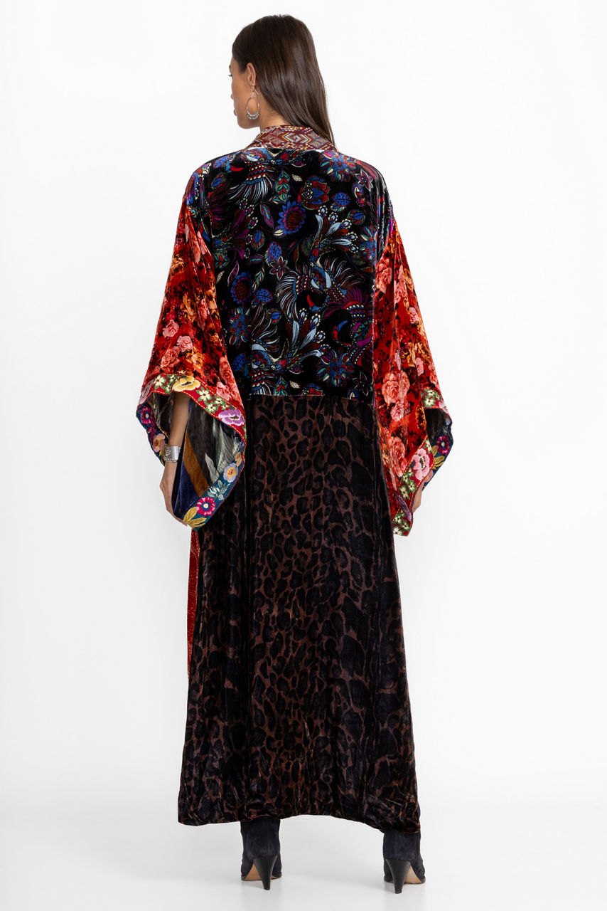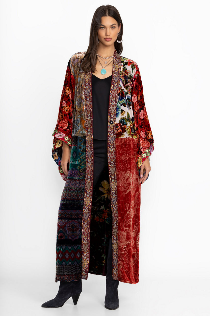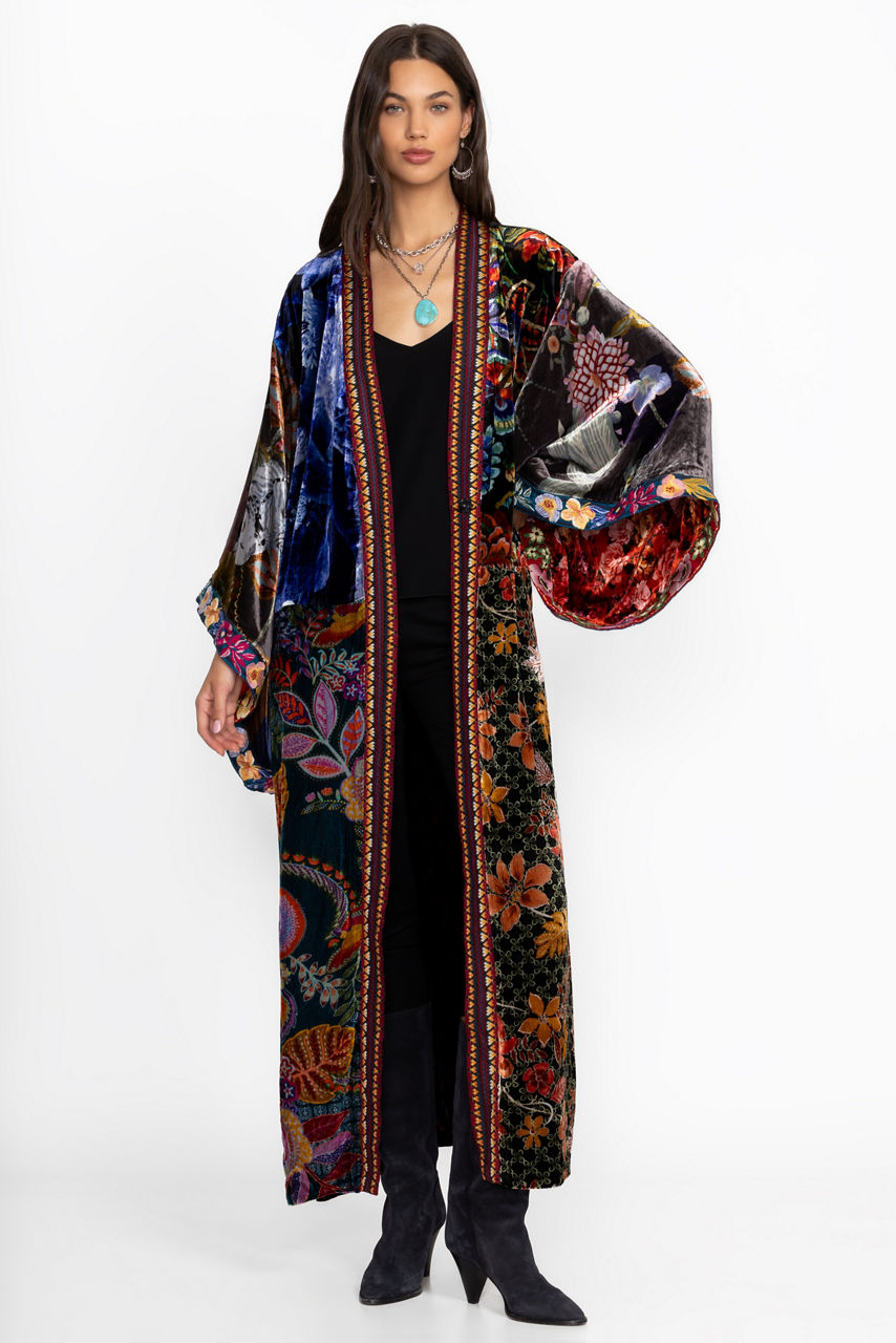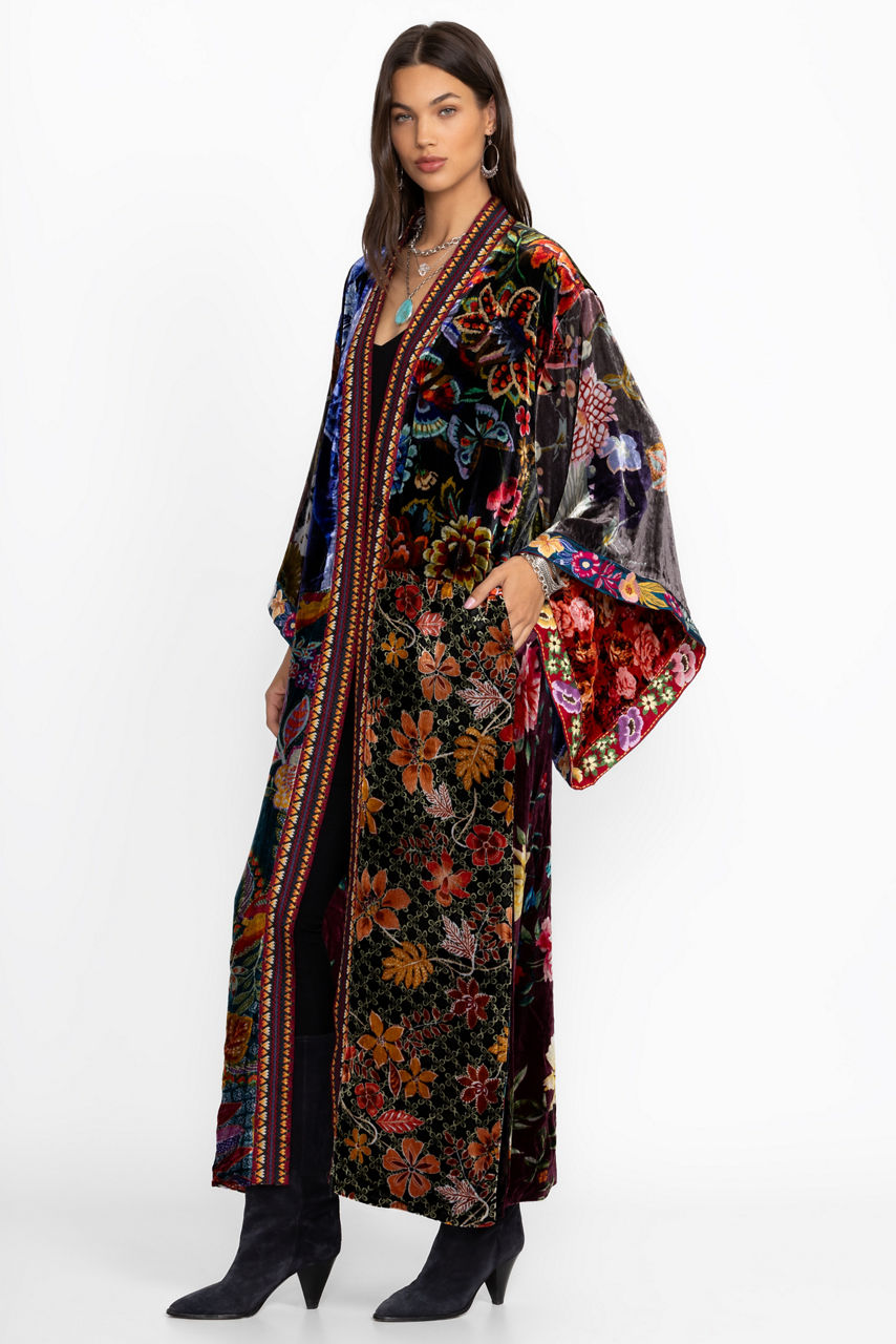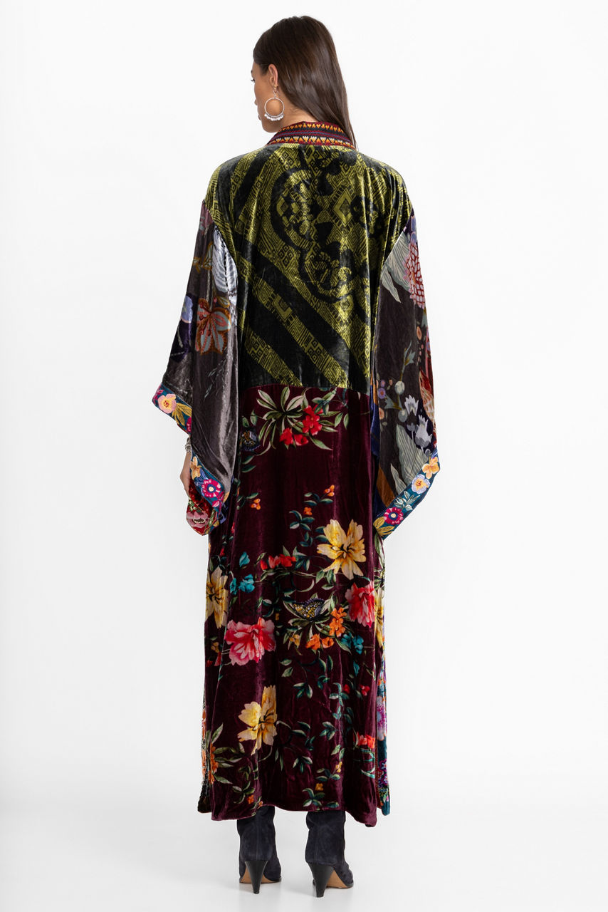 Individually crafted in Los Angeles, the One of a Kind Velvet Kimono is truly unique and no two are alike. Thoughtfully crafted from a plush silk-blend velvet, this full-length kimono is accented with wide sleeves and is finished with a snap-front closure and side vents. Wear over an outfit to add elegance or layer over silky sleepwear and pair with cozy slippers for a truly luxurious evening lounge wear ensemble.