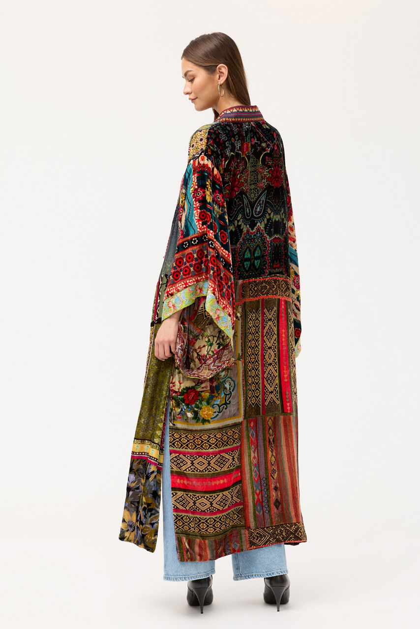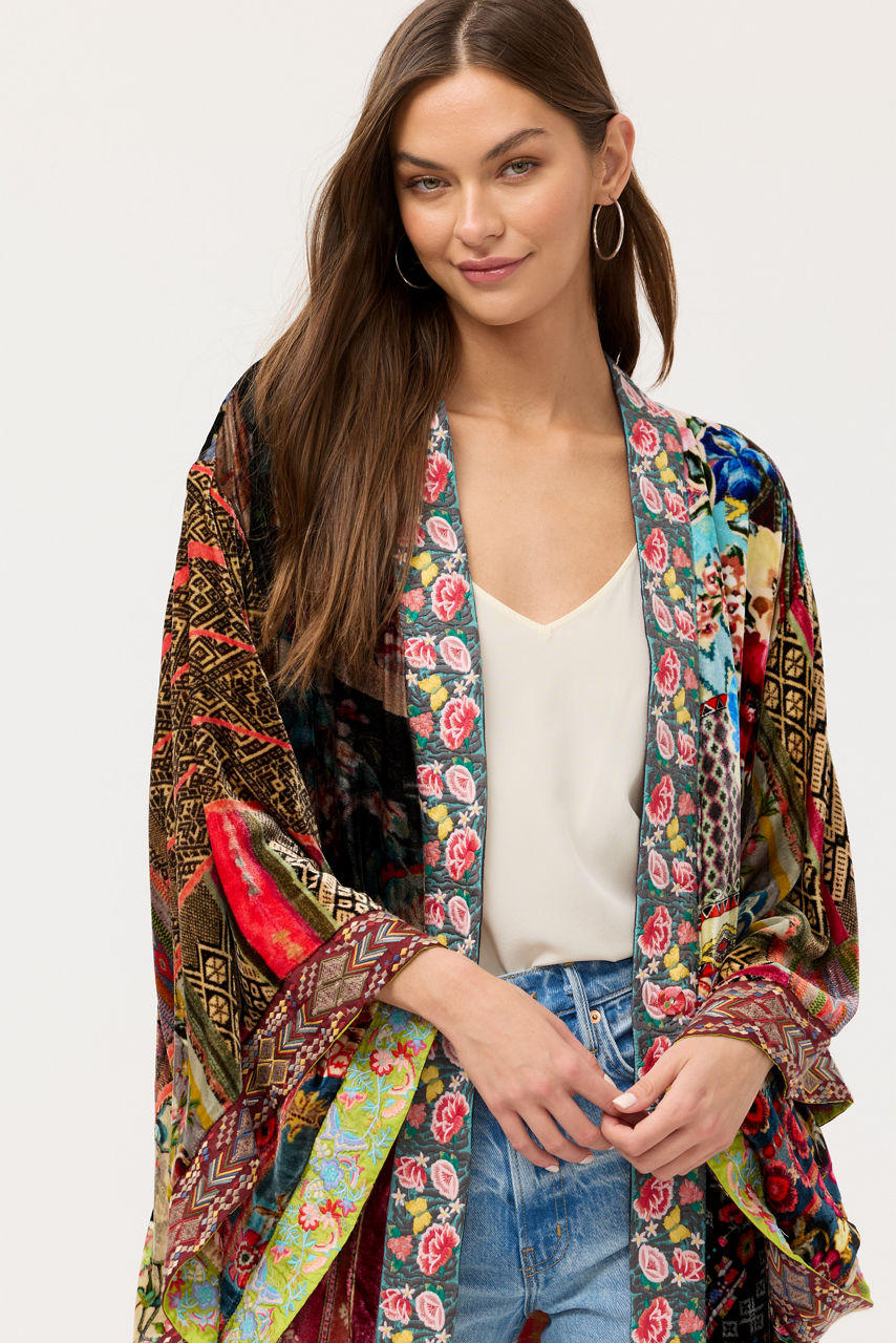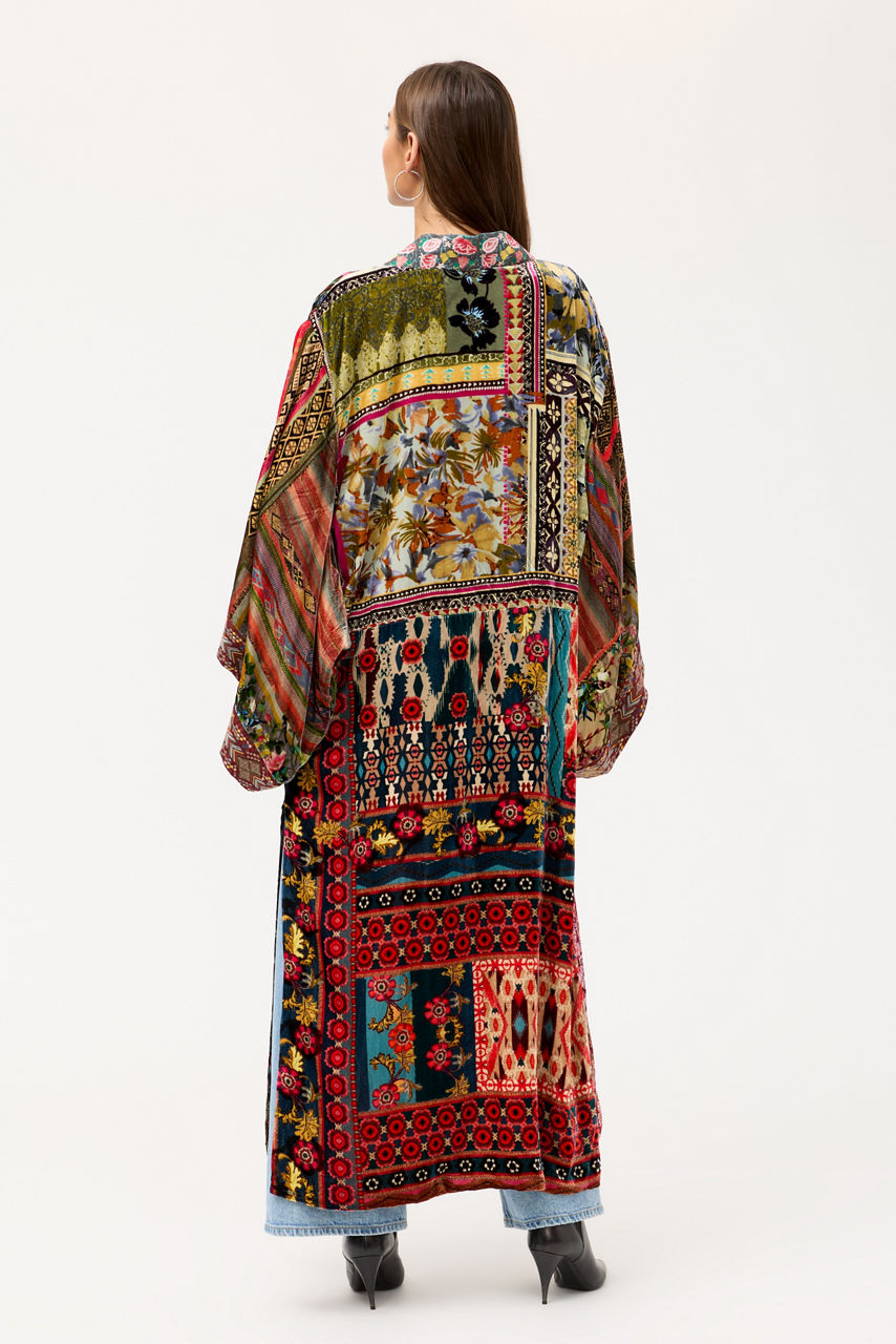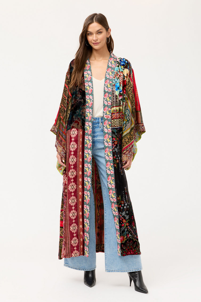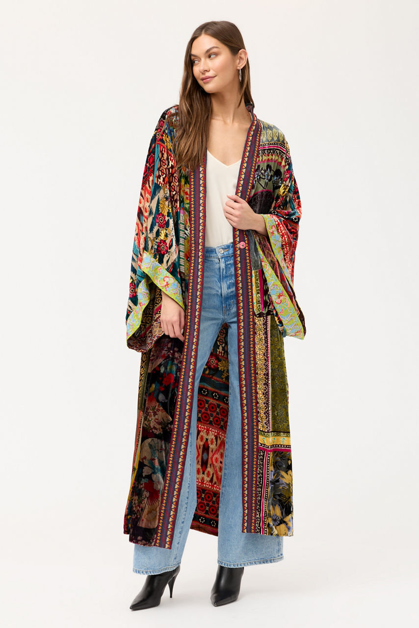 Individually crafted in Los Angeles, the One of a Kind Velvet Kimono is truly unique and no two are alike. Thoughtfully crafted from a plush silk-blend velvet, this full-length kimono is accented with wide sleeves and is finished with a snap-front closure and side vents. Wear over an outfit to add elegance or layer over silky sleepwear and pair with cozy slippers for a truly luxurious evening lounge wear ensemble.