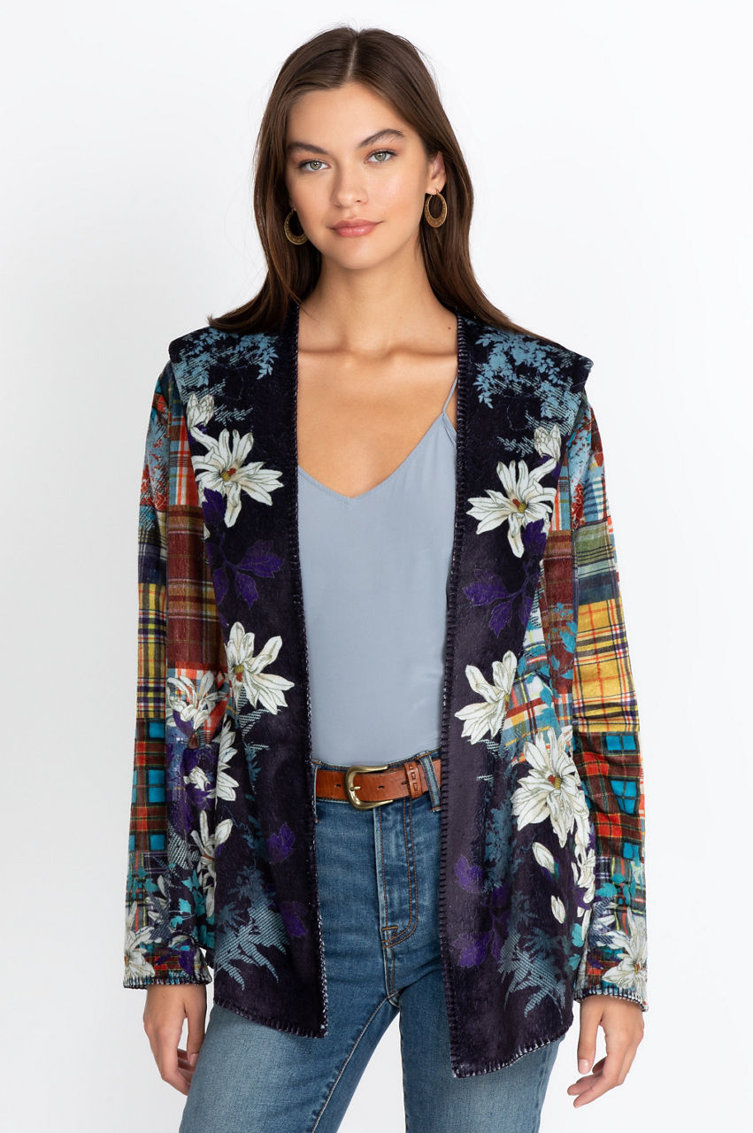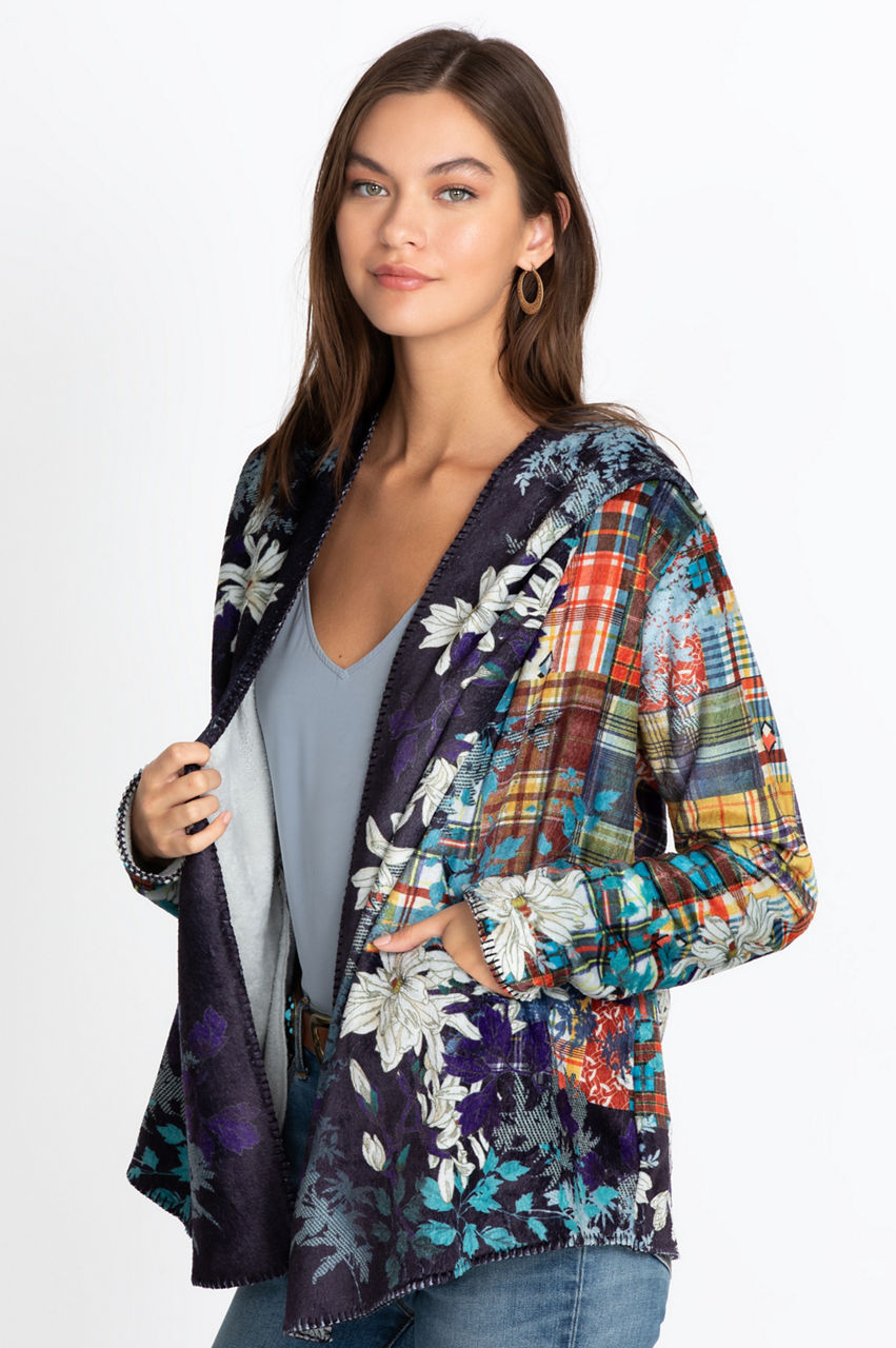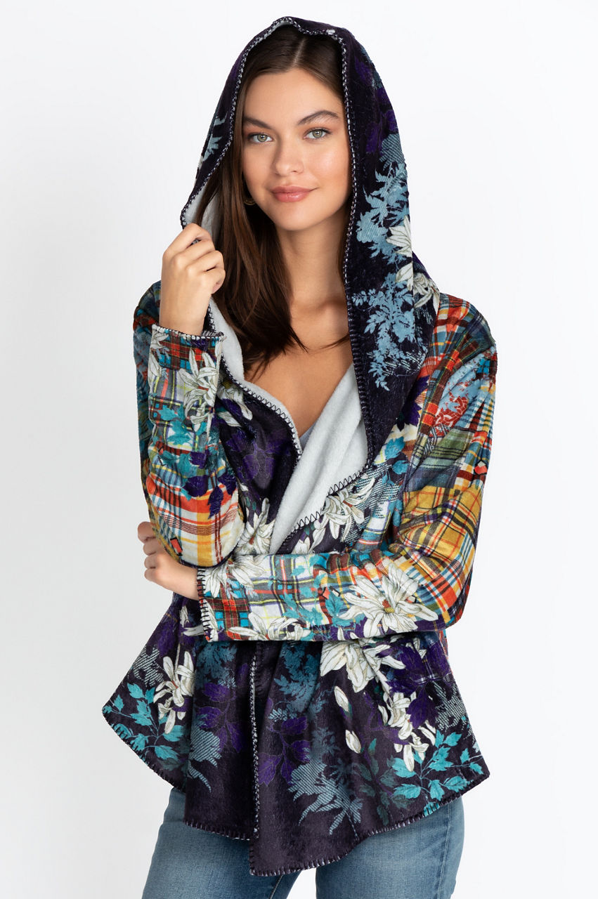 Warm and cozy, the Ono Sherpa Hoodie is an ideal choice for lounging at home or running errands on a cold day. This classic hoodie stands out thanks to its print that combines geometrical and floral motifs for a modern result. It s a versatile piece you can wear with leggings for a laidback look or use as a layer for your favorite jeans and tee outfit.