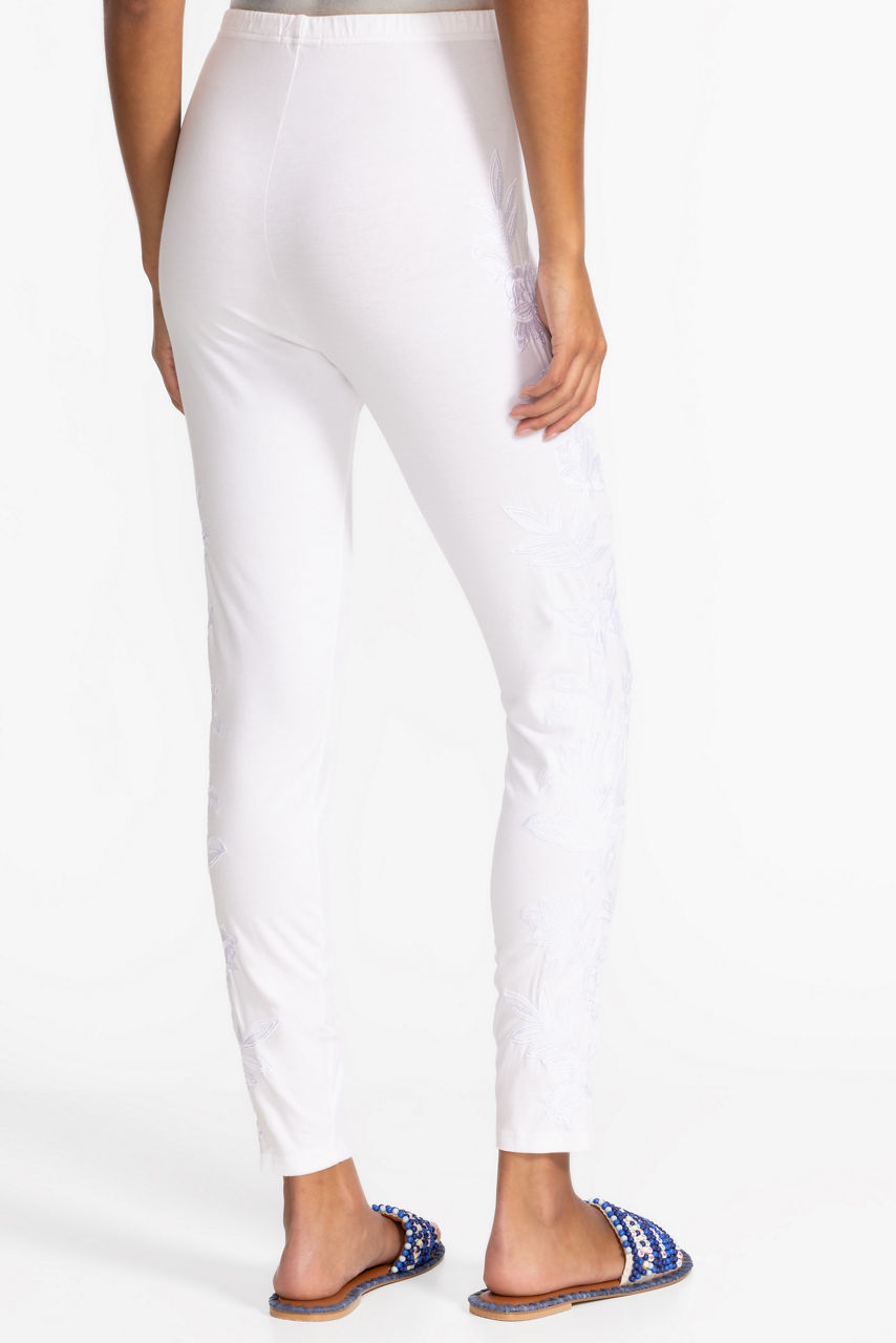 Crafted from a lightweight cotton blend with a hint of stretch, the Orla Leggings equal parts comfort and style. Featuring an elastic waist and a fitted silhouette, these leggings are accented with intricate tone-on-tone embroidery at the leg line. Pair with a tunic top and leather flats for an elevated casual style.
