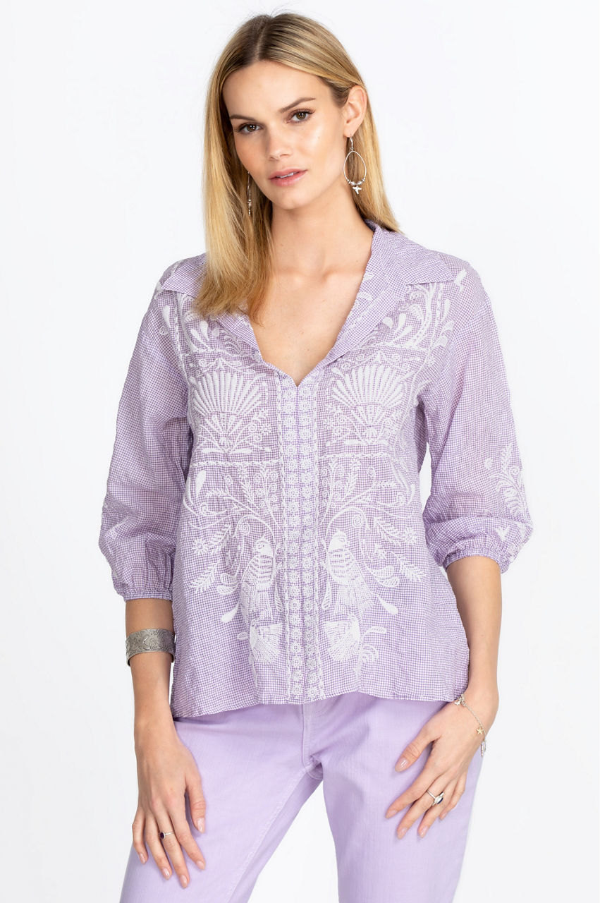 Our Orla Wander Blouse features an incredible design, signature embroidery and lavishing fashion to bring your Bohemian style to the next level. Whether you re visiting the local music festival or meeting up with friends on Sunday, this piece is sure to make a statement. Pull the perfect Bohemian ensemble together by adding your favorite skinny jeans, strapped sandals and floppy hat.