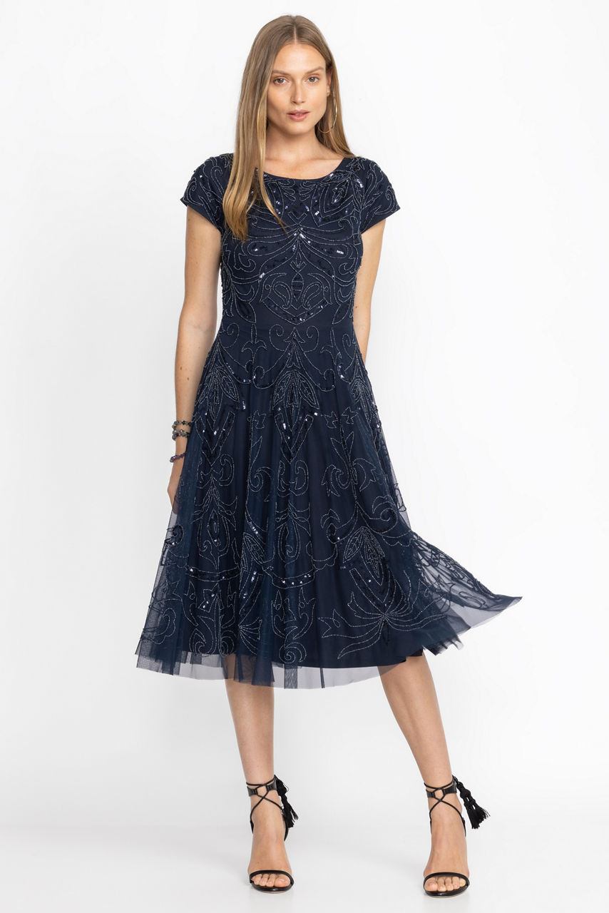 Paisley Beaded Mesh Dress