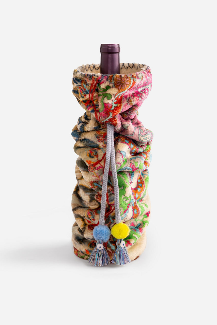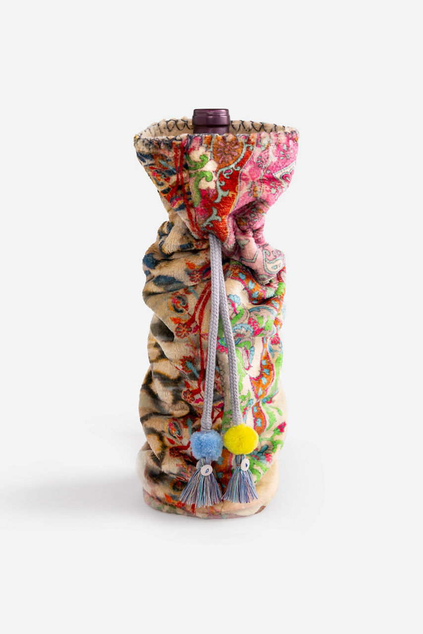 Spread holiday cheer with the beautifully designed Paisley Tie Wine Tote. Featuring a top opening cinched with a delicate drawstring embellished with a decorative pom, this unique tote is finished with a vibrant paisley pattern. Fill with a vintage wine and offer this stunning tote as the perfect host gift for holiday parties.