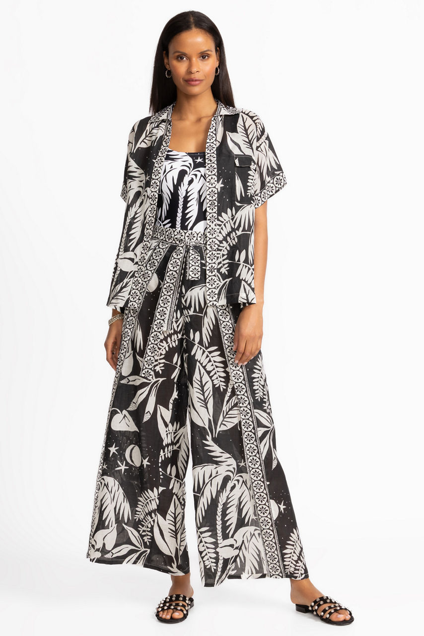 Elevate your beachside look with the Palmas Wrap Pant, featuring a sleek black and white pattern that blends modern style with effortless elegance. Designed as the perfect swimwear cover-up, this wrap pant offers lightweight comfort and a flattering silhouette for any sun-soaked outing.