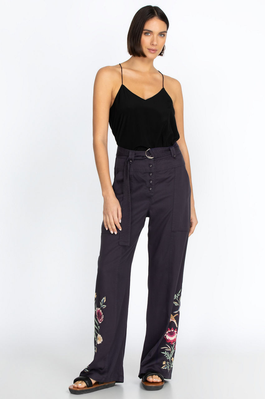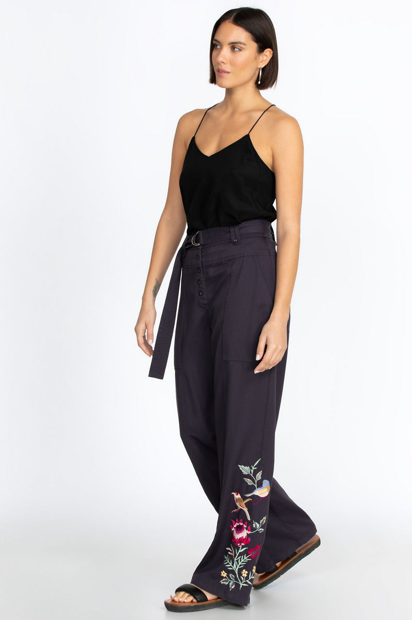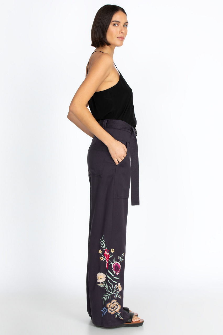 Introduce a utilitarian touch to your vacation repertoire with the Paloma Belted Wide Leg Pants. Enhanced by elegant florals, these embroidered pants are crafted from breathable lyocell with belt loops, side pockets, and a straight leg. Pair them with a blouse or oversized tunic for a relaxed and sophisticated ensemble.