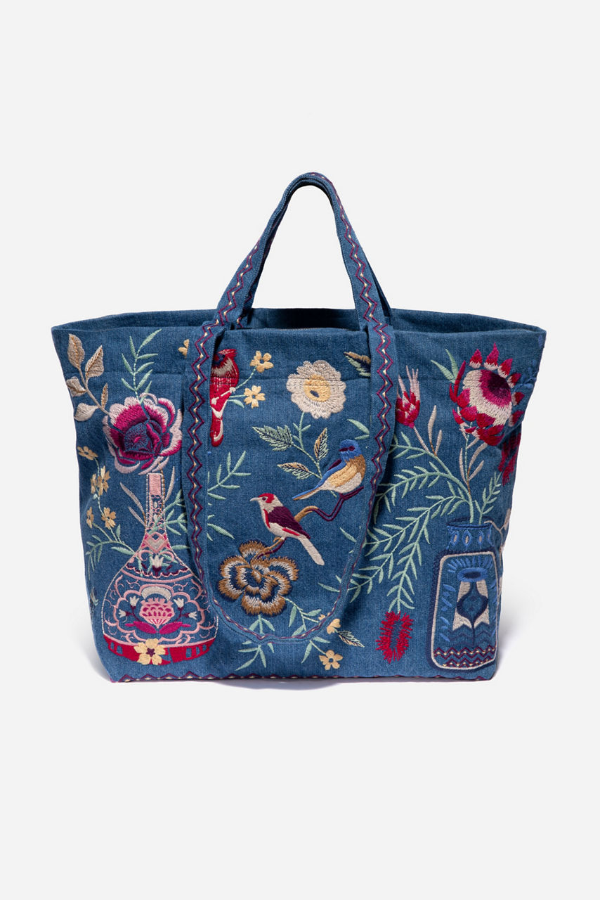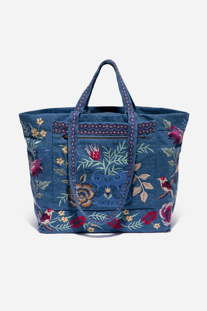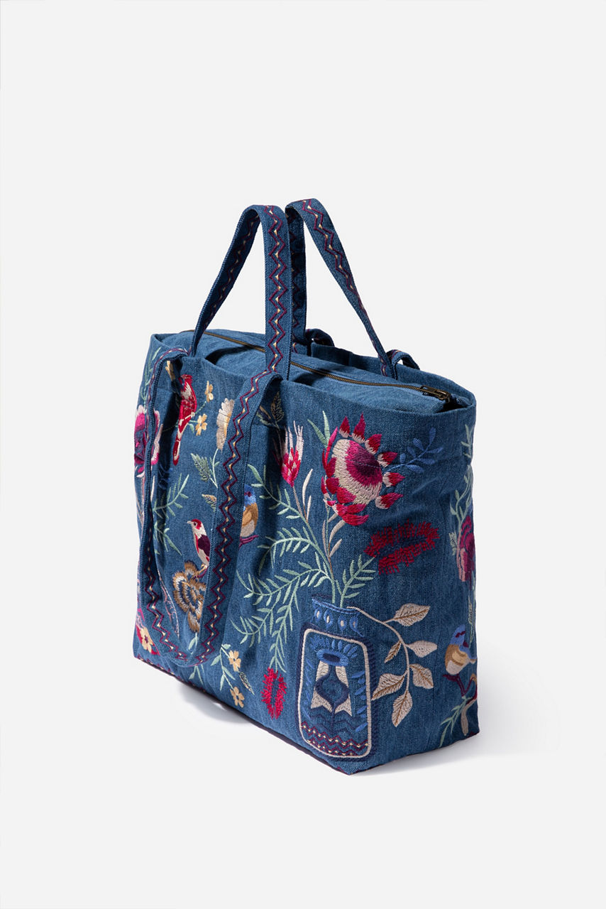 An elegant choice for vacations and short getaways, the Paloma Travel Tote combines vintage charm with practicality. This sturdy cotton tote features two top handles, an external pocket and a joyful floral embroidery for a feminine finish. Team with everything from floaty blouses to midi dresses.