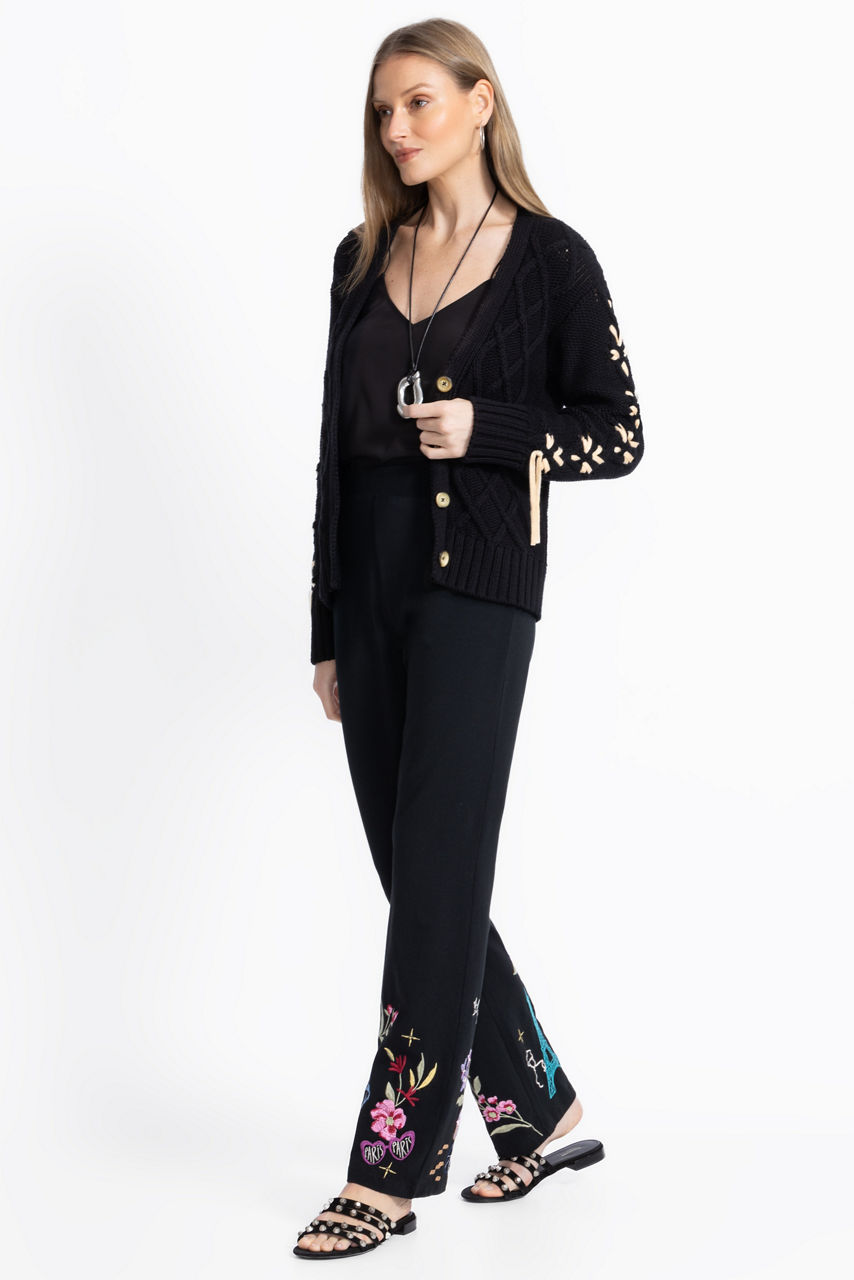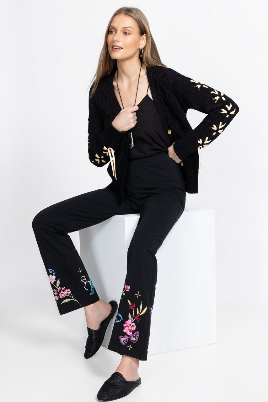 Crafted from a rich cotton blend with a hint of stretch, the Paris Baby Boot Leggings create a stunning silhouette. Embellished with intricate floral embroidery in vibrant colors, these flared leggings are equally comfortable and stylish. Pair with a colorful tunic top and fashion sneakers for a casual weekend look.