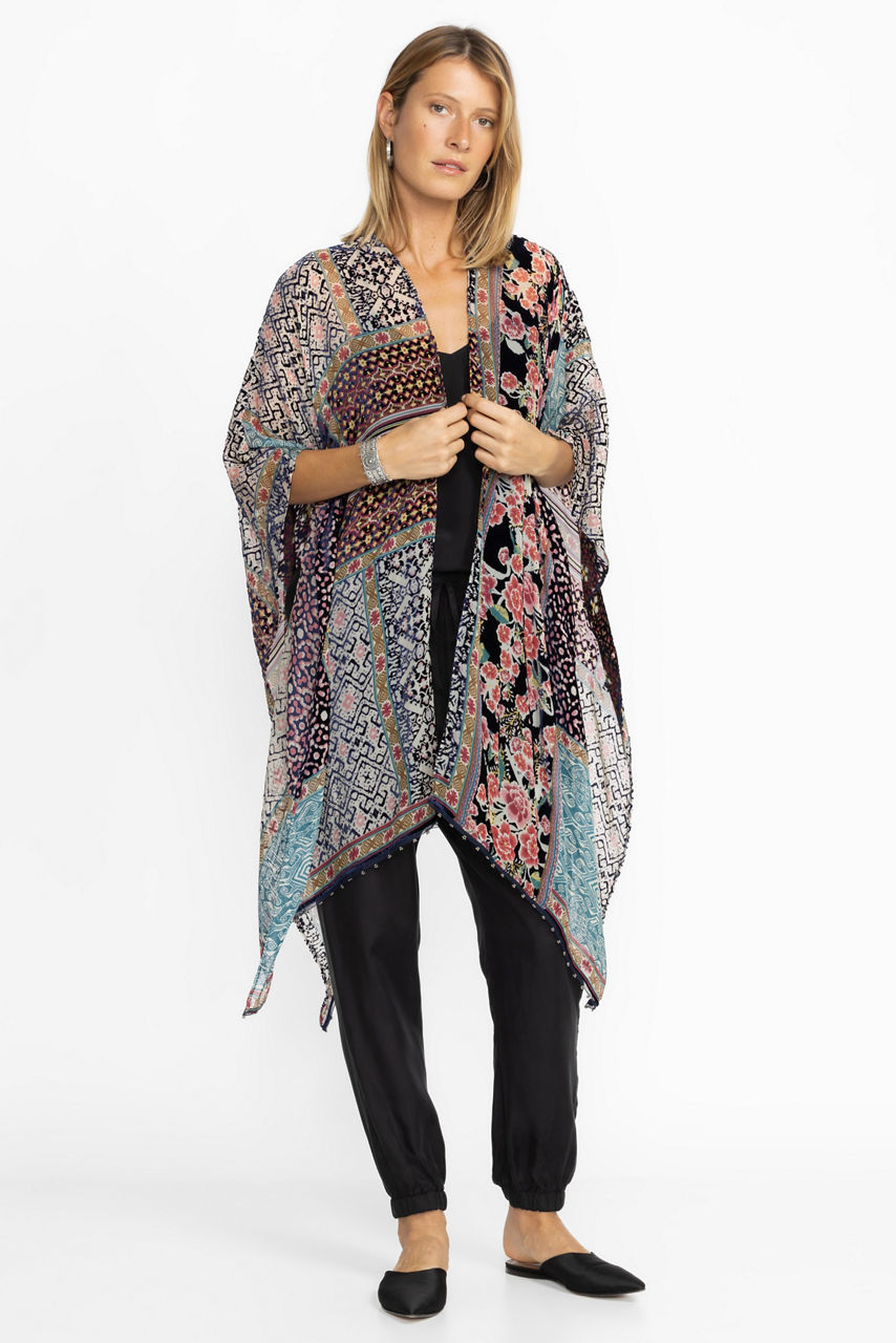 Underpinned with a carefree charm, the Patchwork Burnout Shawl lends a bohemian edge to your new season wardrobe. Layer this shawl over a plain tee during the day and switch to a silk dress at night.
