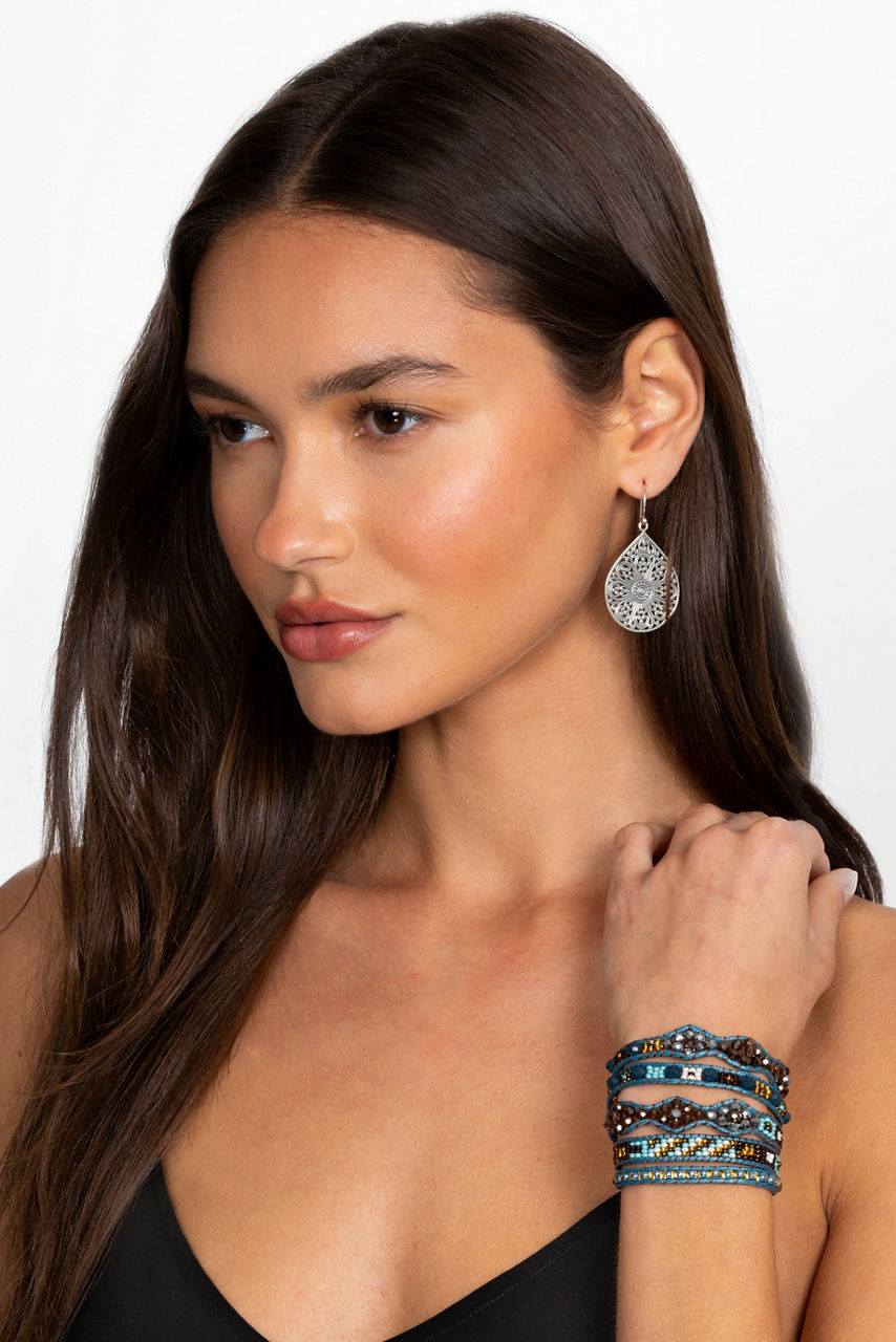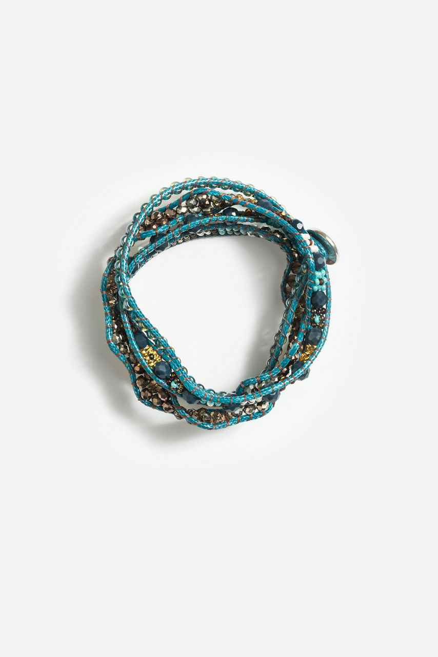 Offering an eclectic look, the Path of Guidance Beaded Wrap Bracelet creates a stunning layered jewelry styling. Elegantly embellished with brilliant glass and crystal beads in earthy tones, this handcrafted bracelet is finished with patina accents and a pewter button closure. Pair with a boho-chic ensemble for a casual look with elevated style.
