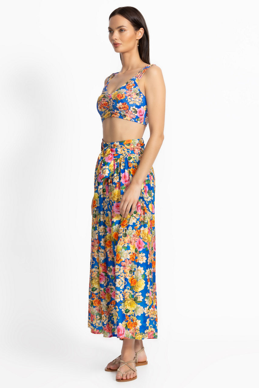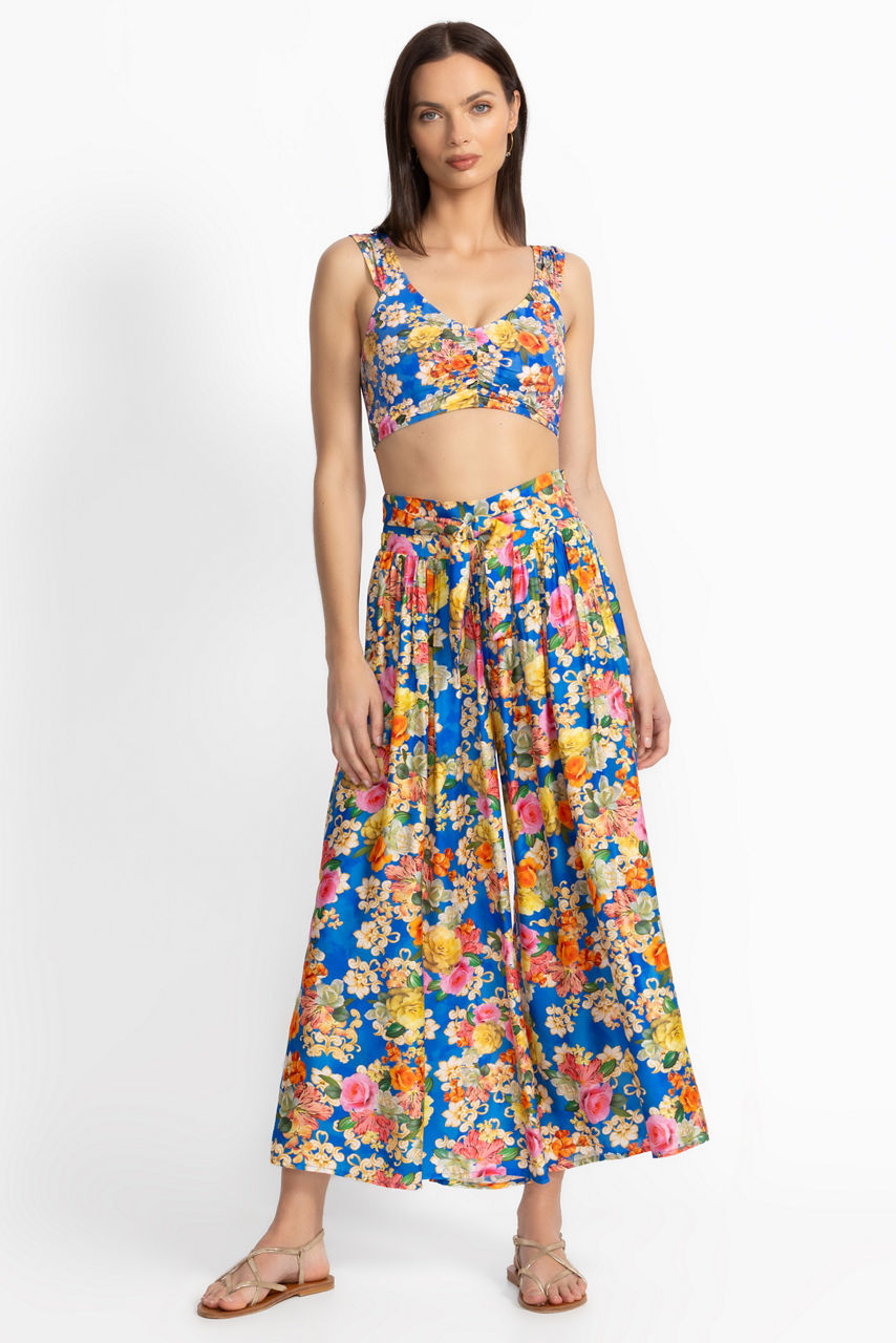 Crafted from a luxurious silk blend, the Pauline Palazzo Cropped Pants create a beautiful relaxed silhouette. Designed with elastic smocking at the waist with a drawstring for a customizable fit, these flowing floral pants are finished with pockets at the hips. Pair with the Pauline Ruched Cropped Bikini Top and Hipster Bottoms for a look that goes easily from brunch to poolside.