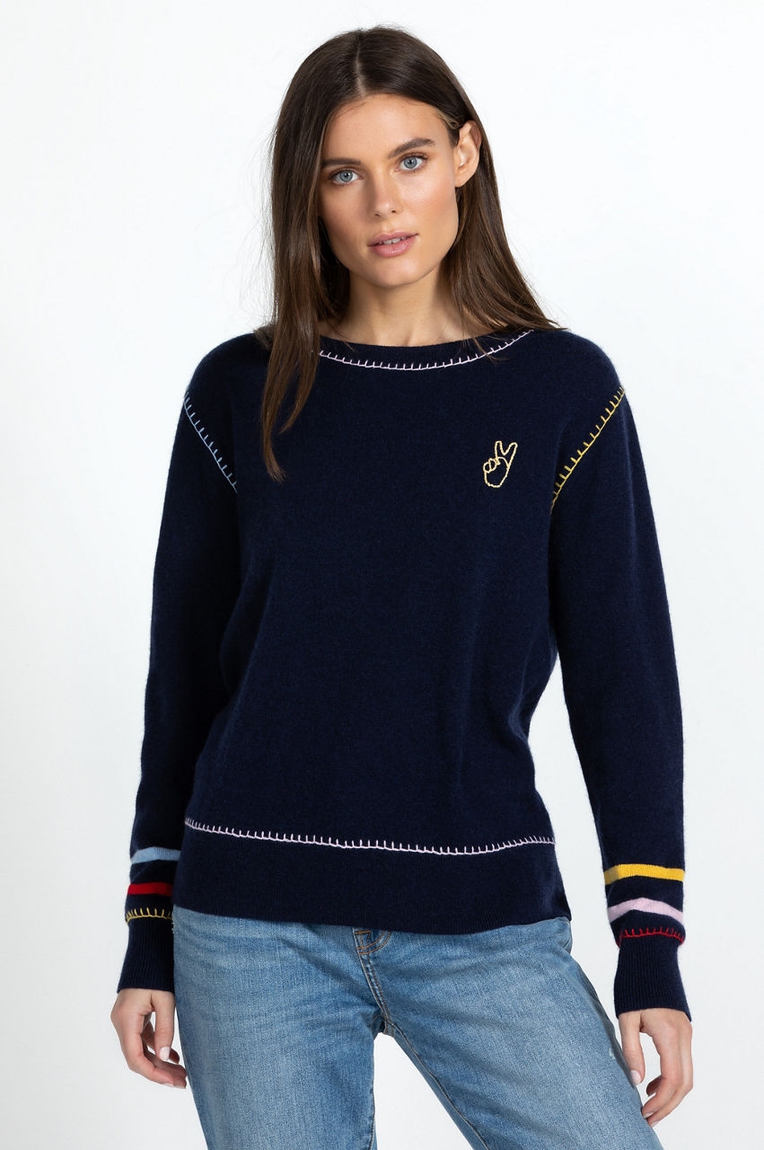 Permeated with a care-free attitude, this Peace Sweater evokes feelings of love and tranquility. This sweater is fabricated from a warm wool and cashmere blend and boasts a round neck, long sleeves, ribbed edges, and colorful whipstitching for a playful finish. Finalized with a peace symbol placement embroidery, this sweater is sure to lend an optimistic touch to winter looks.