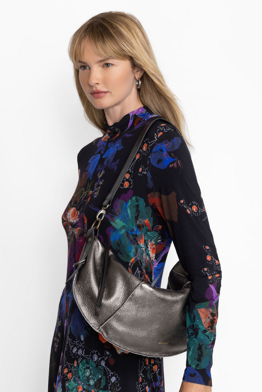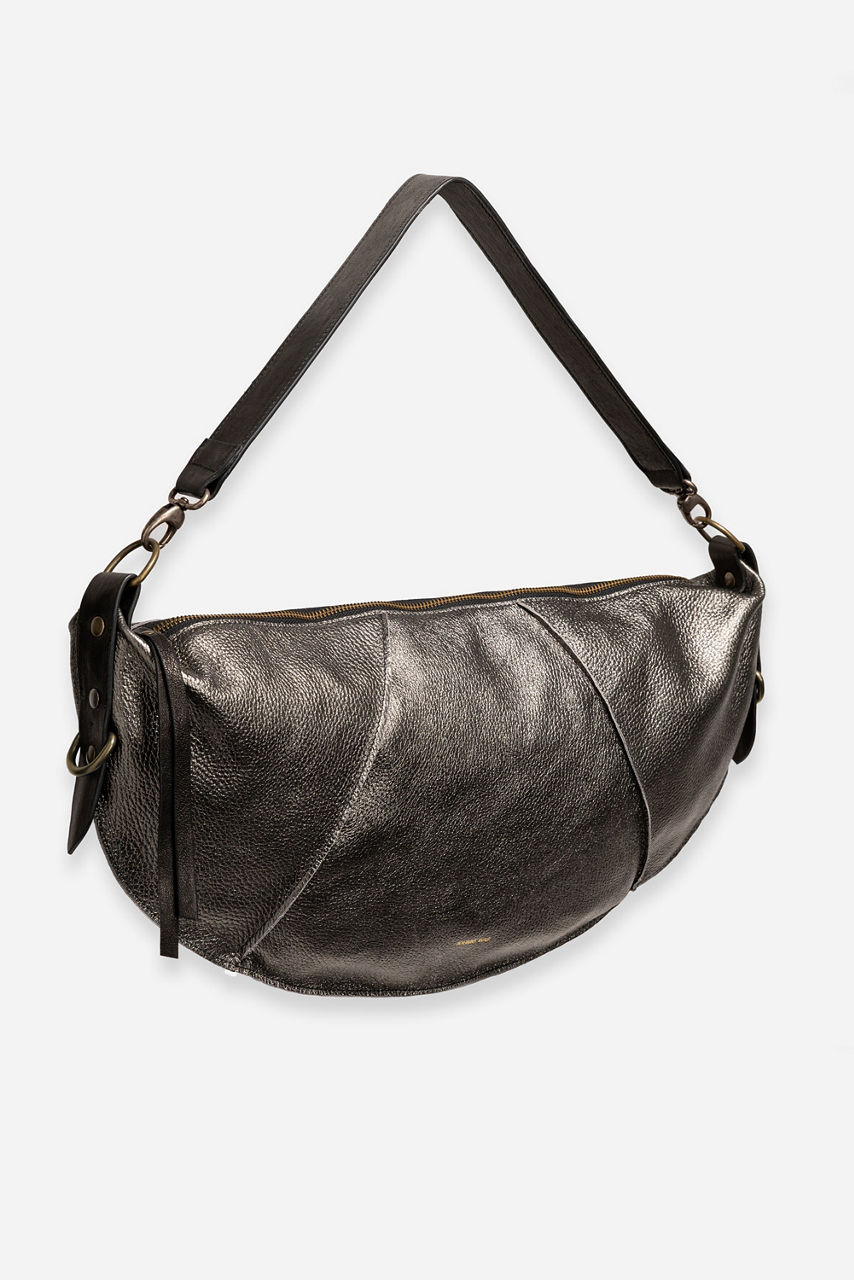 Crafted from 100% leather, the Peltro Italian Leather Raw Edge Faithful Bag is perfect for everyday. Featuring a wide shoulder strap and a crescent shape, this bag is finished with raw edges for a broken-in feel. Pair with a silk button-down and classic denim for a polished casual look.
