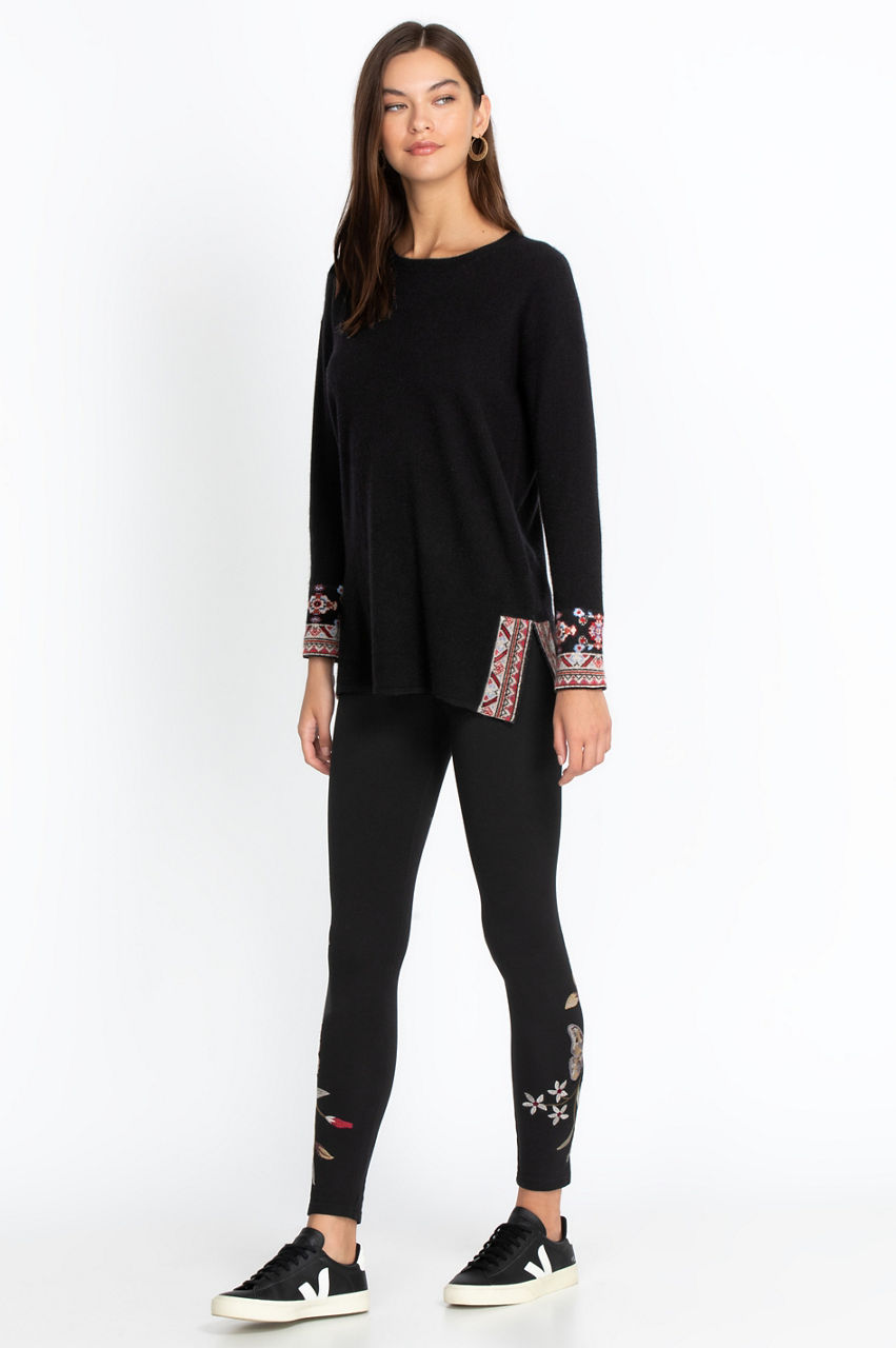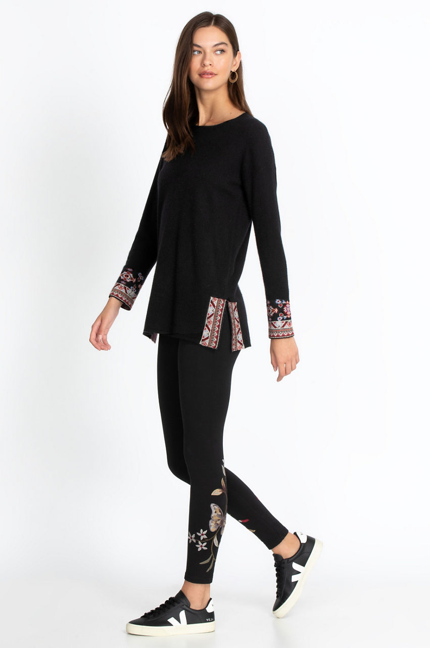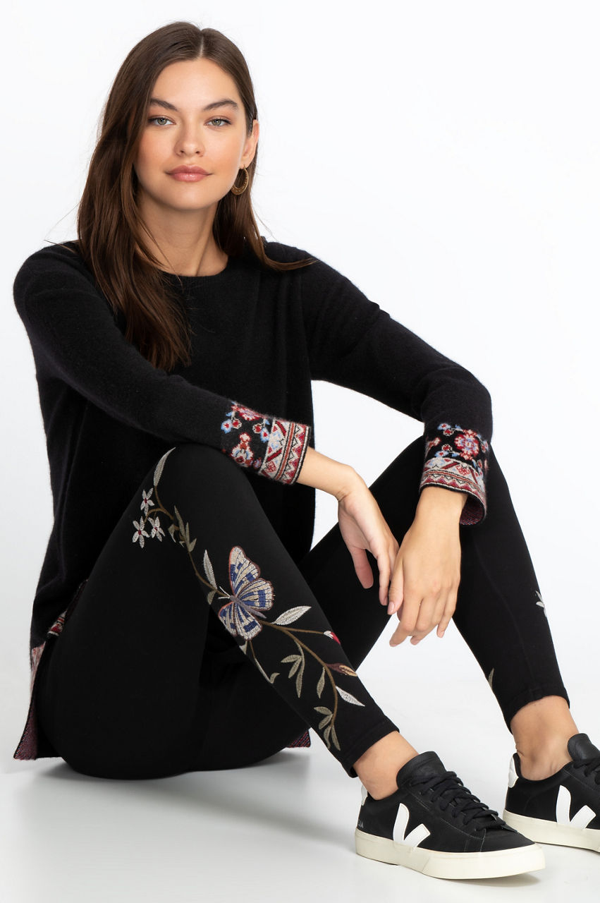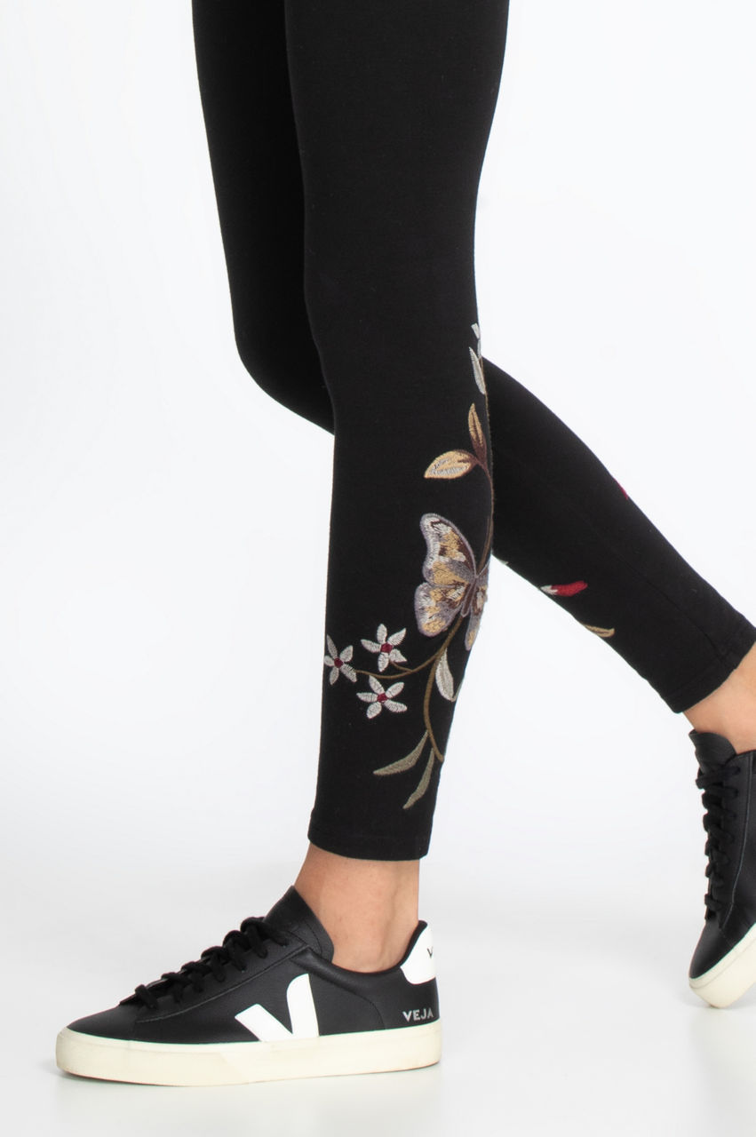 Our Penelope Legging is as cozy as it is chic. Its brilliant embroidery add a splash of Bohemian pizazz to any casual ensemble. Pair this piece with a relaxed embroidered tee and open-toed sandals or with a bold crew neck tee and sneakers. Then, add a simple necklace and an athletic hat to pull off a casual boho look.