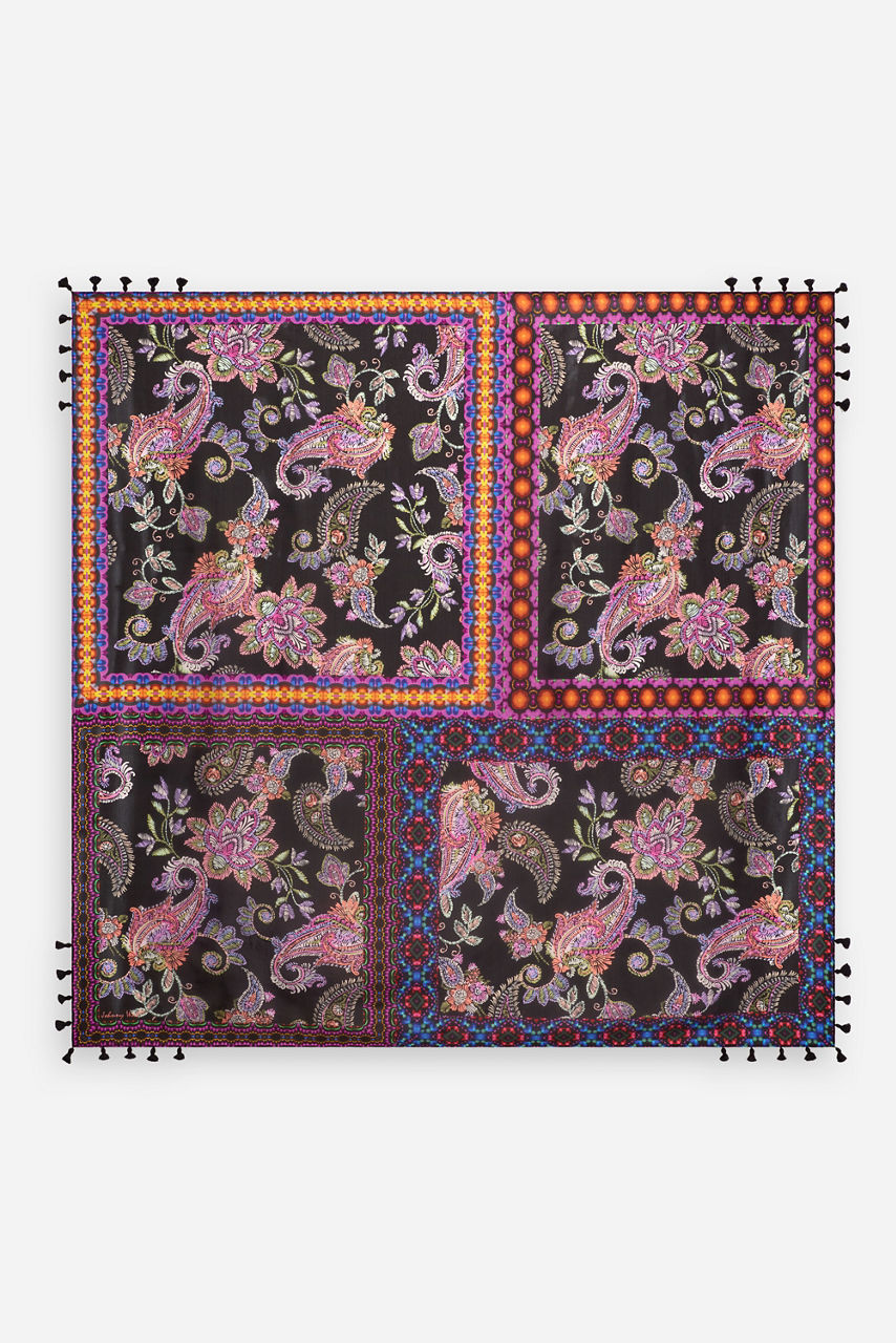 Crafted from luxurious, 100% silk, the Petra Silk Scarf is adorned with an ornate paisley and floral print in rich colors. Thoughtfully designed to enhance any look, this square scarf is finished with tassels at each corner for added texture. Tie at the neck or at the handle of your favorite bag for a pop of color.