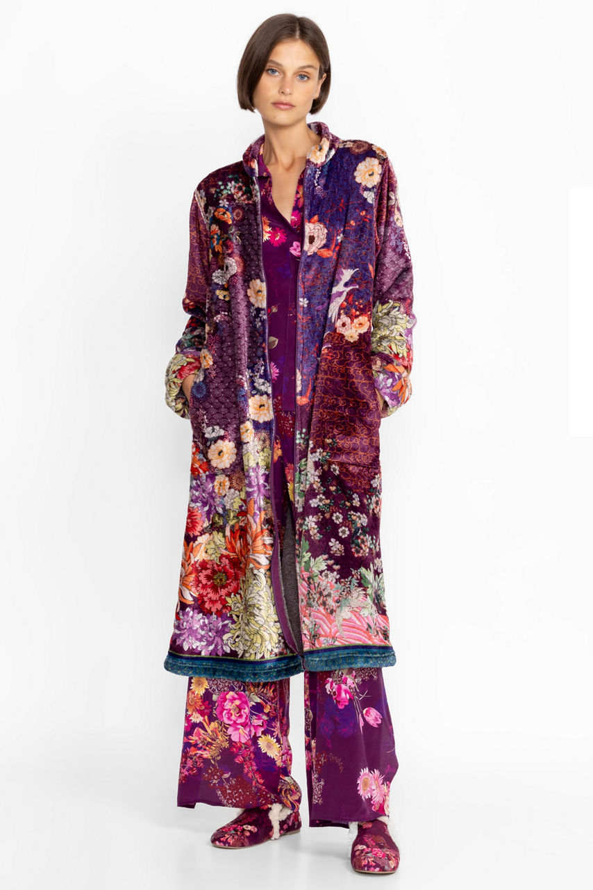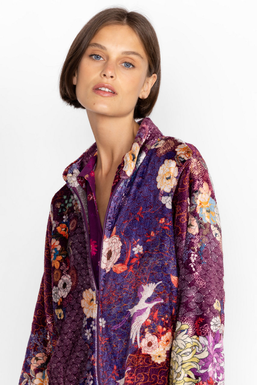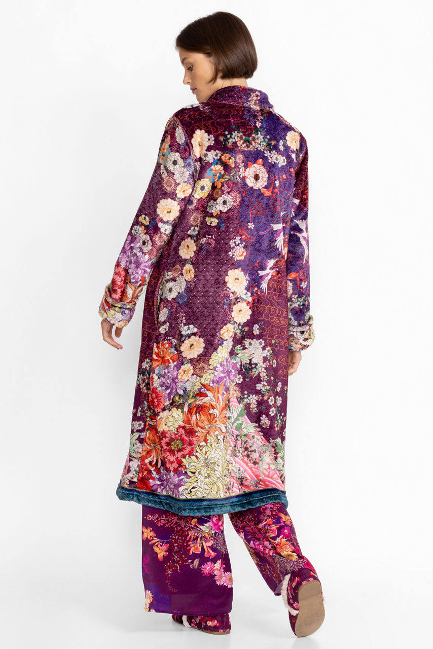 Infused with other-worldly charm, the Phoenix Zip Up Robe makes a case for statement outerwear. Evoking images of a bygone era, this robe is made from a lightweight fabric and features a collar, long sleeves, a zipper closure, a trim at the hem, and a rich floral pattern brimming with diverse colors. To keep this robe as the focal point of your outfits, pair with simple separates and accessories.