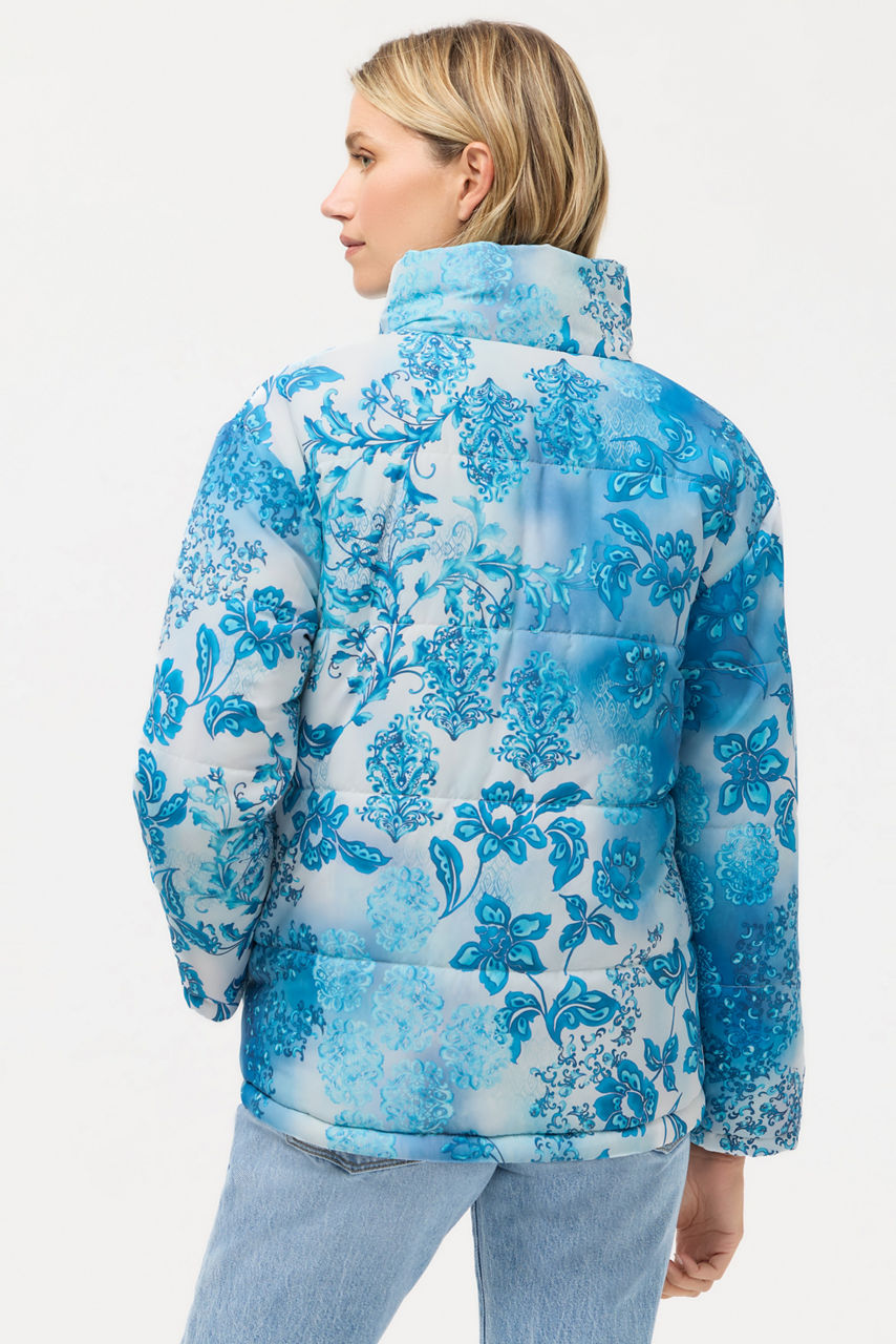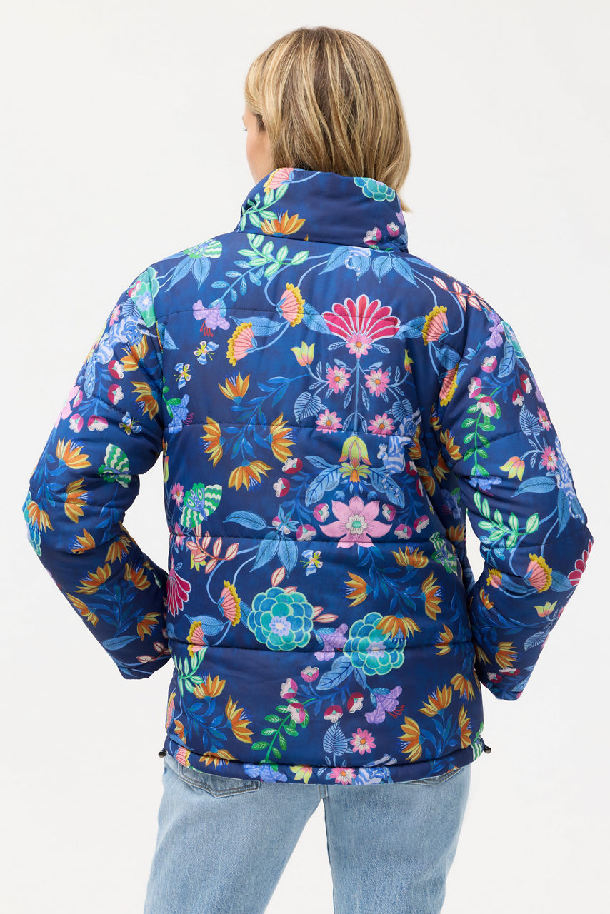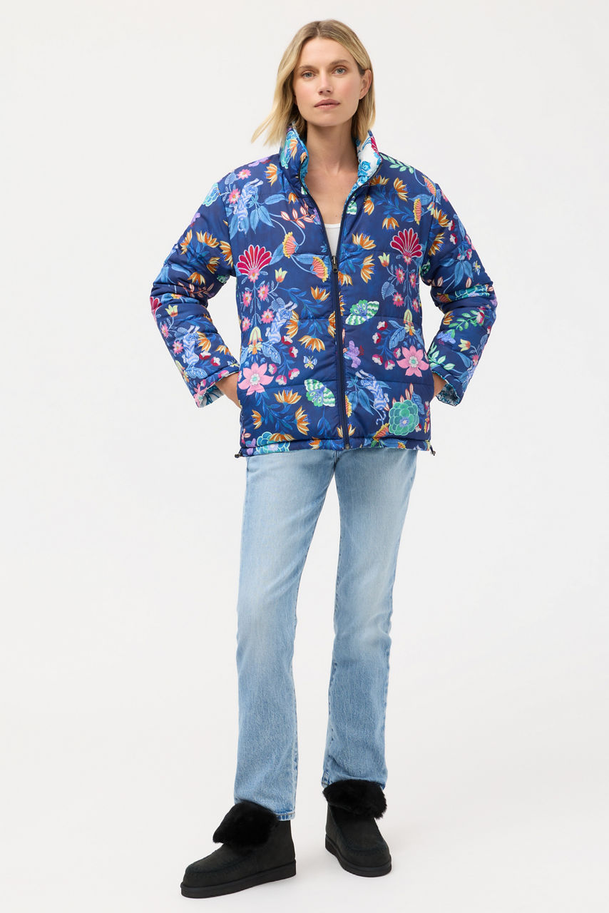 Beautifully embellished with two unique designs, the Pia Puffer Jacket is fully reversible, creating two distinctive looks. Featuring a standing collar and a zippered front, this cozy jacket offers a bungie cord at the hemline for a customizable fit. Layer over a warm sweater and thick leggings for a perfect cold weather ensemble.
