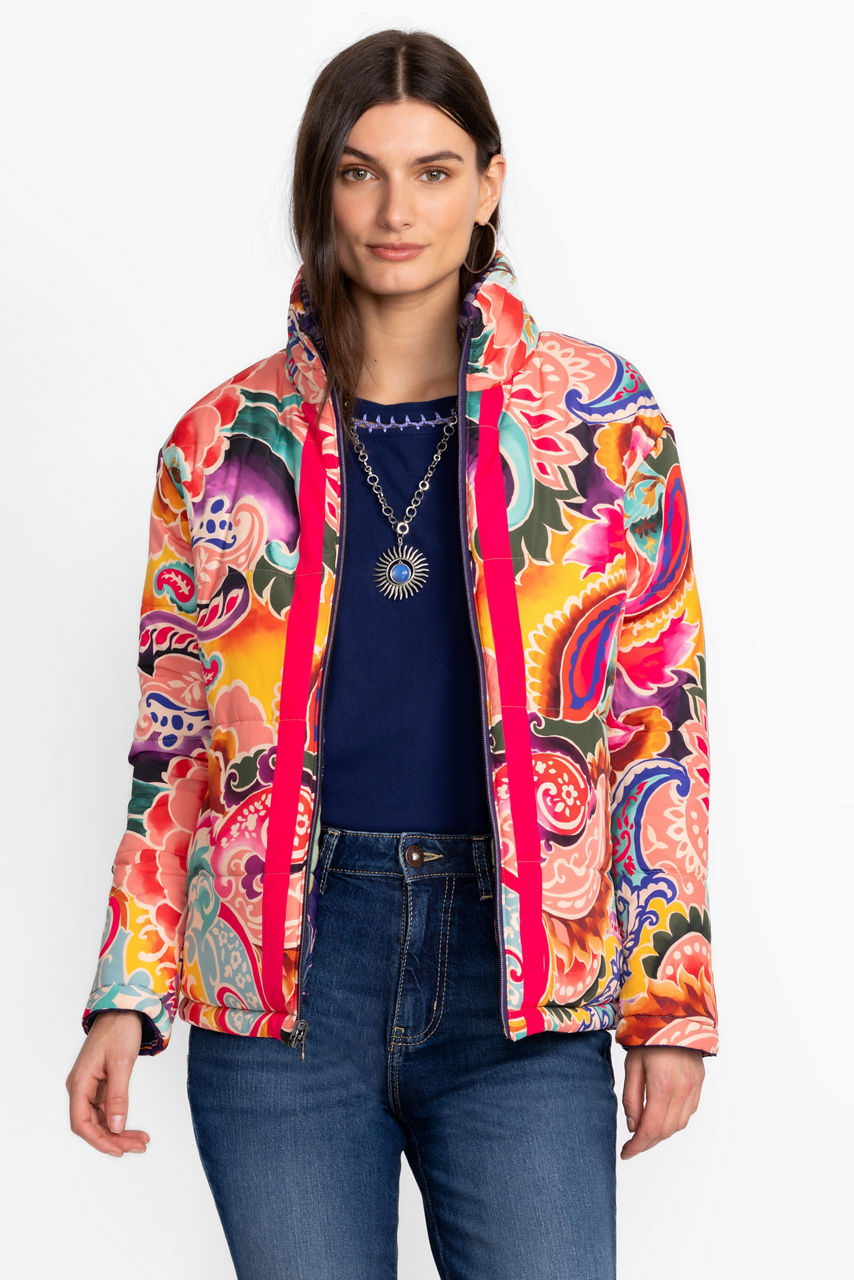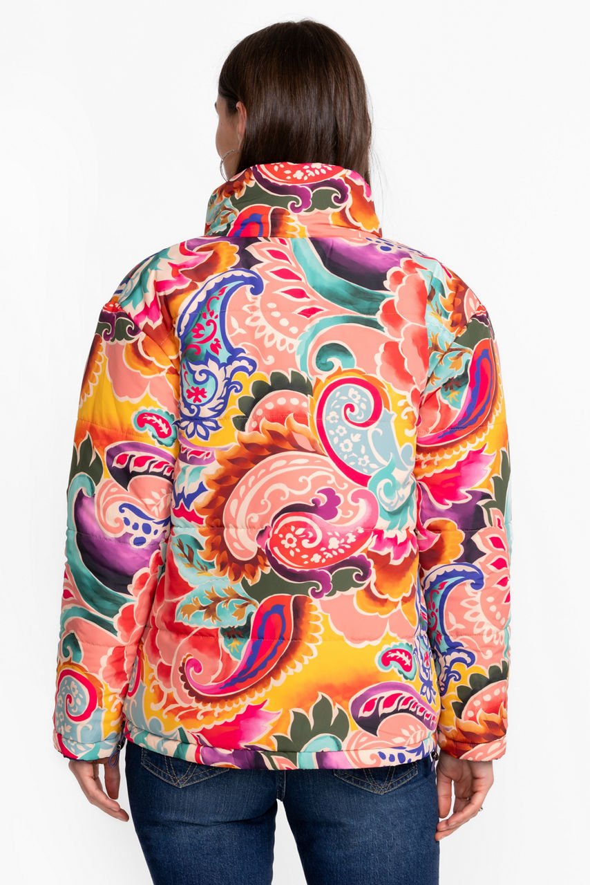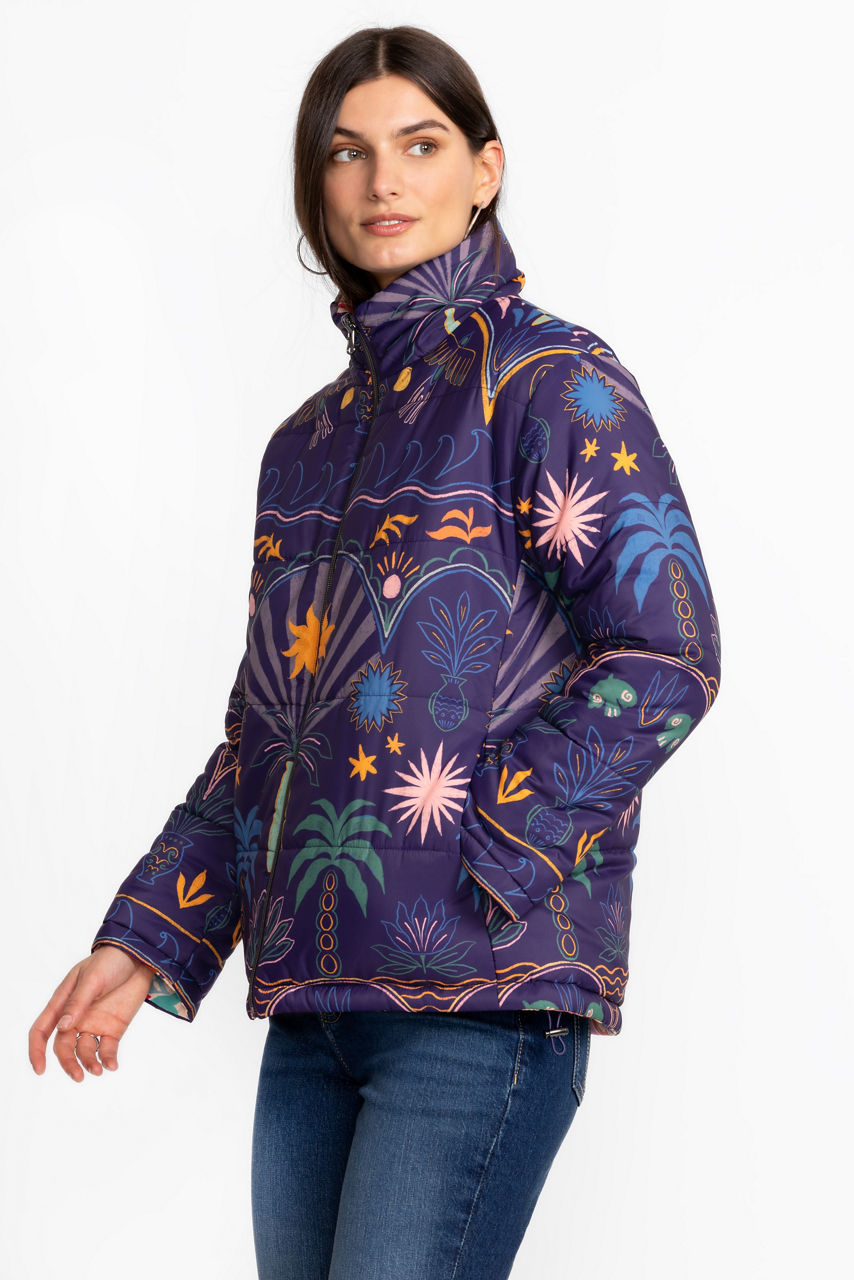 Cozy and colorful, the Pia Puffer Jacket is equal parts stylish and comfortable. Featuring two unique designs, this fully reversible jacket offers a standing collar with a zippered front and a bungee cord hem for a customizable fit. Layer over a wool pullover and lined pants for a refreshing cold-weather look.