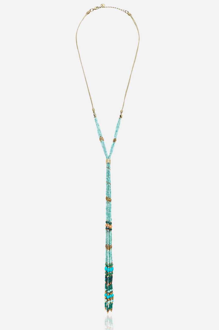 The Pippa Lariat Necklace combines classic construction with luxe on-trend detailing. This chic piece features gorgeous turquoise stones and metallic accents throughout for that perfect pop of color. Pair with a simple satin slip dress and silk kimono for a chic boho look or dress it down with your favorite denim and a white camisole.