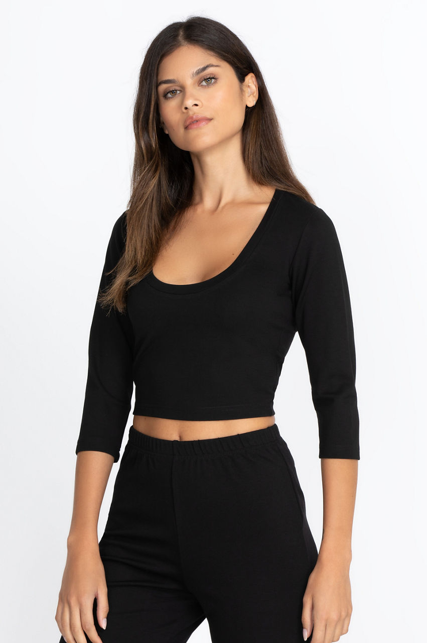 The Ponte Scoop Neck Top combines ultra-soft fabrics with an ultra-flattering silhouette. This classic piece pairs perfectly with everything from high-waisted printed leggings or joggers to classic denim and tailored pants. Add your favorite chunky cardigan and cashmere-knit beanie to complete the cold-weather look.