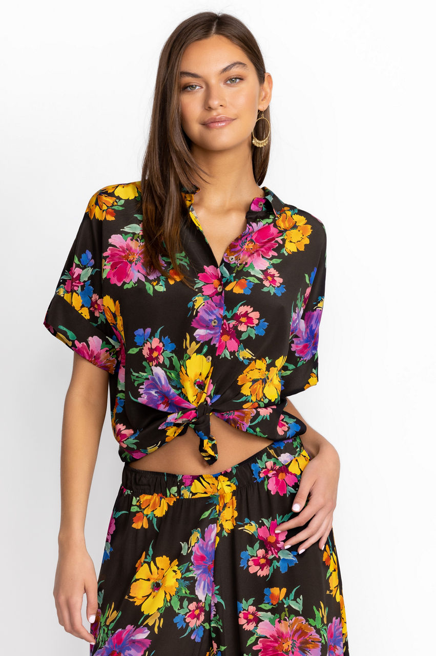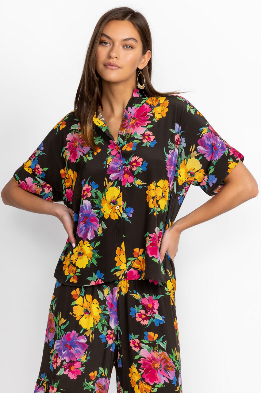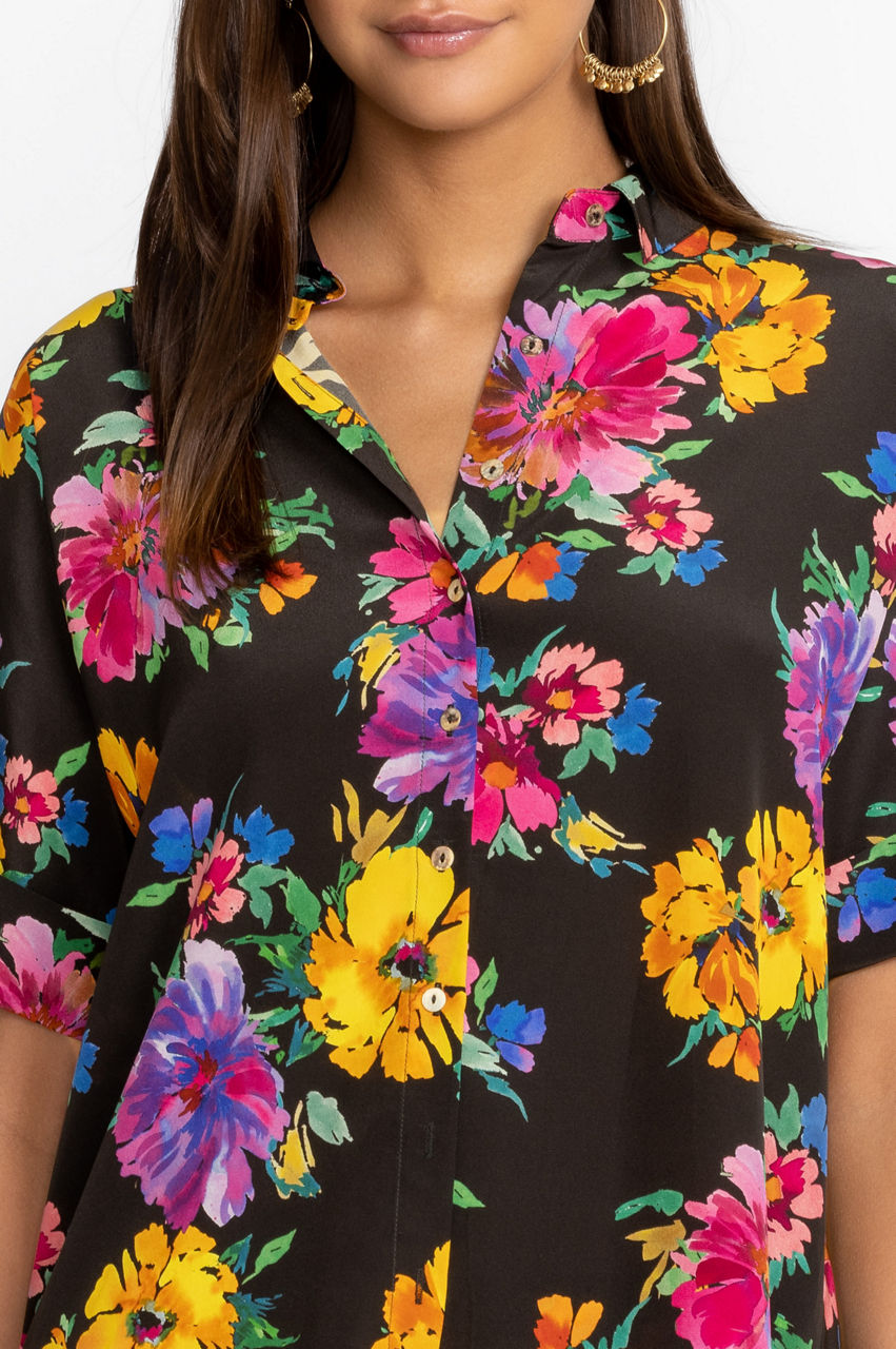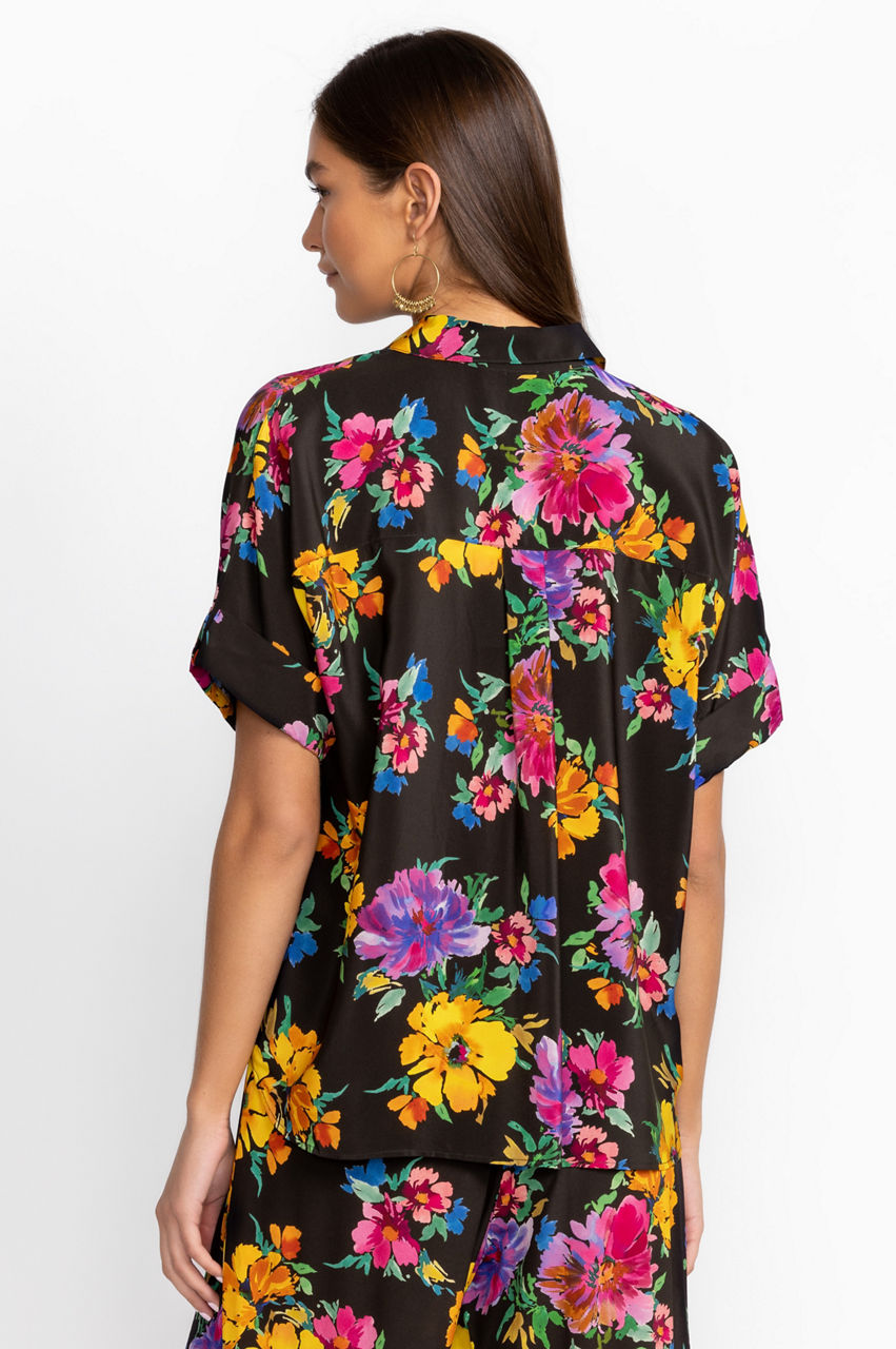 Featuring rich color to celebrate the season, the Poppy Silk Shirt brings to mind rolling hills saturated in vibrant floral tones. Crafted from pure silk and fastened by intricately placed shell buttons, this blouse is the capstone of any look. Pair with a solid skirt or denim to allow this blouse to take center-stage.