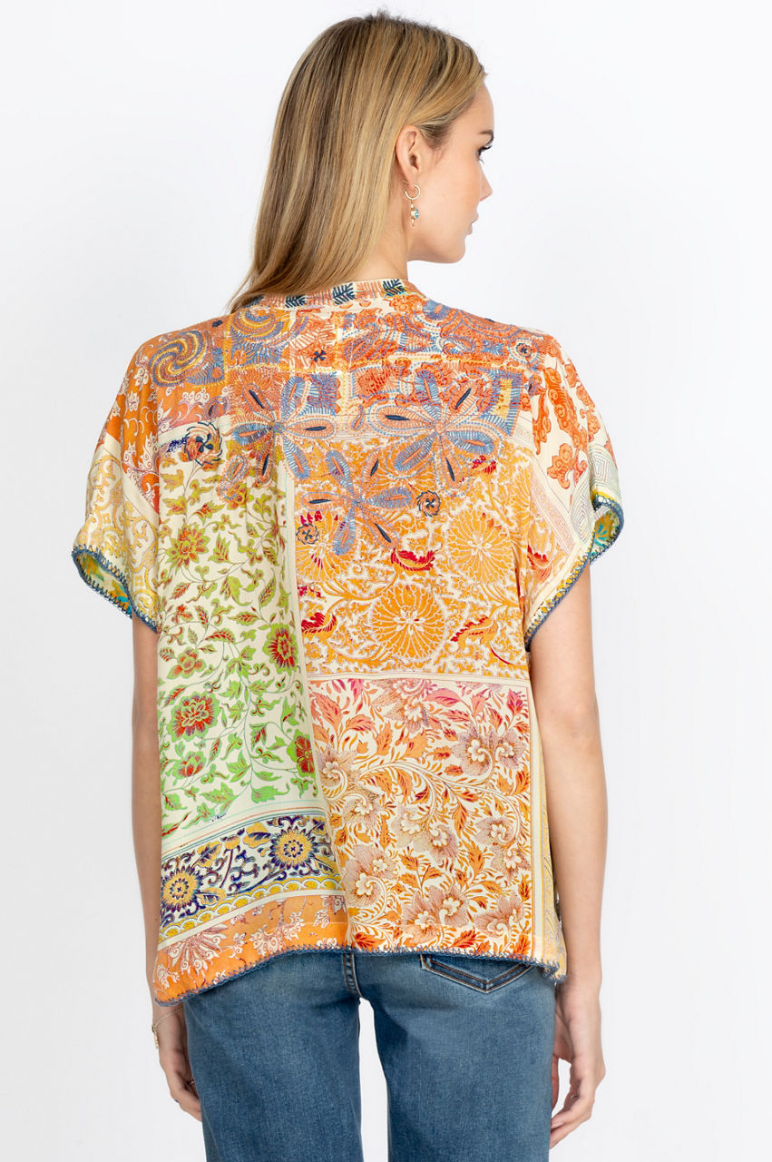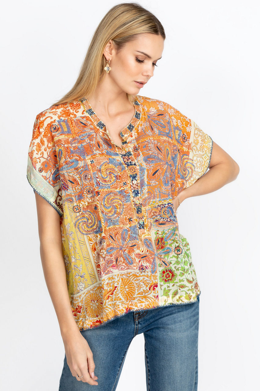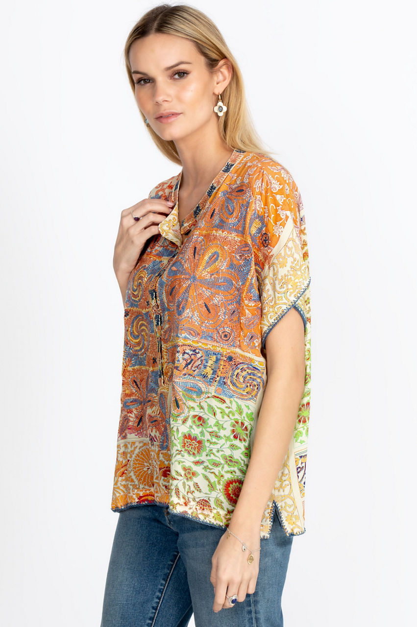 With its short sleeves and flowy fit, the Prima Embroidered Blouse is a perfect top for warm weather. The deep placket collar and side slit details create a unique look while drawing attention to your favorite pendant or necklace. This versatile blouse will look great with some skinny jeans, but you can pair it with some dress pants for a more sophisticated look.